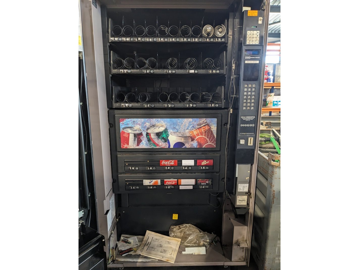 Vending machine voor snacks en drinken, crane national vendors, model 498g