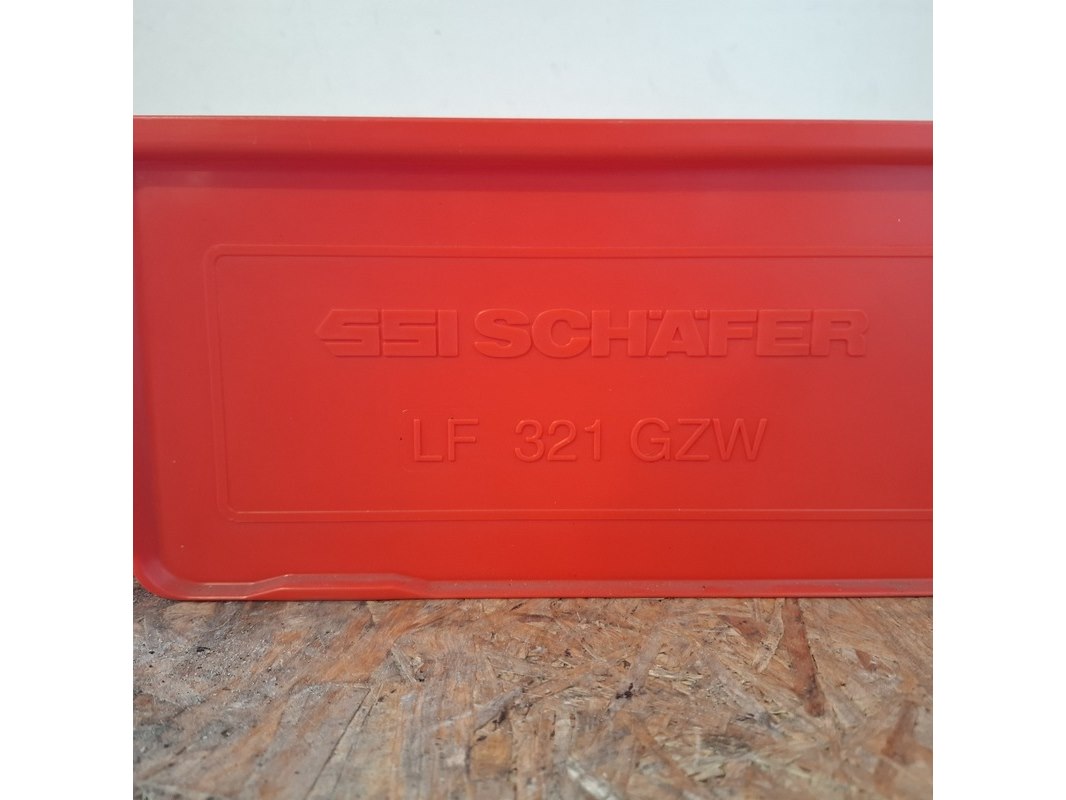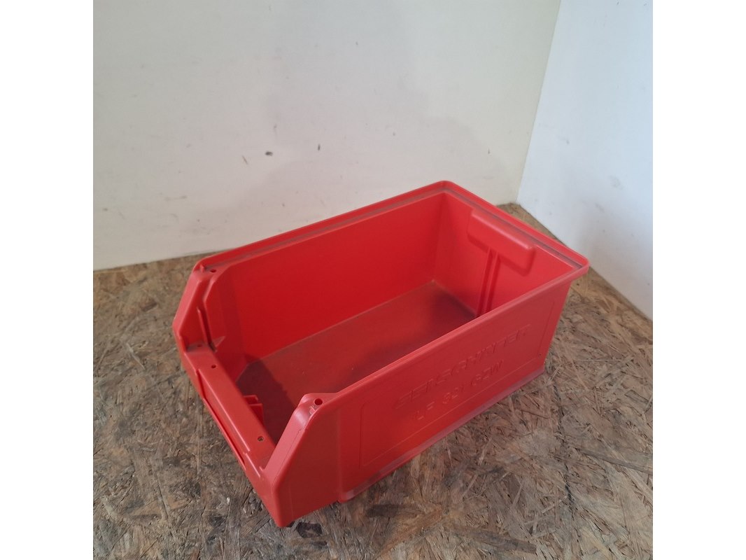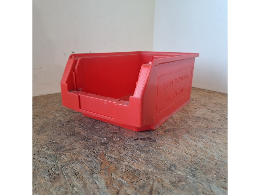 Merk: Schafer Product: Magazijnbakken met grijp opening Kleur: Rood Materiaal: Kunststof Afmeting: 35x20x15 cm Conditie: Gebruikt Specificaties: Zeer nette en degelijke Magazijnbakken goed stapelbaar met etikethouder