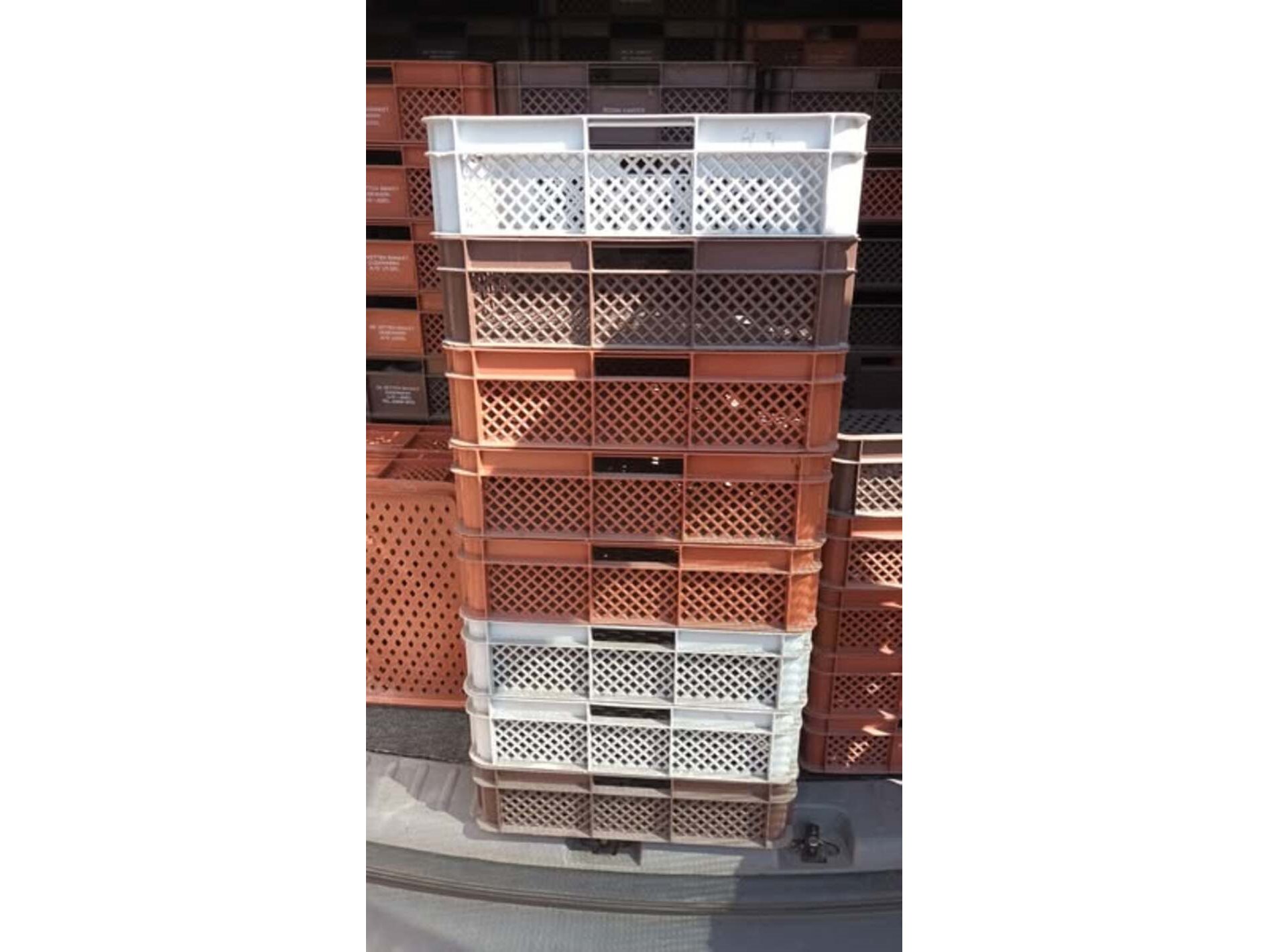 Product: Stapelkratten Materiaal: Kunststof Afmeting: 35x40x11 cm Conditie: Gebruikt Specificaties: Stapelkratten in 3 kleuren Zijn 2 pallets vol