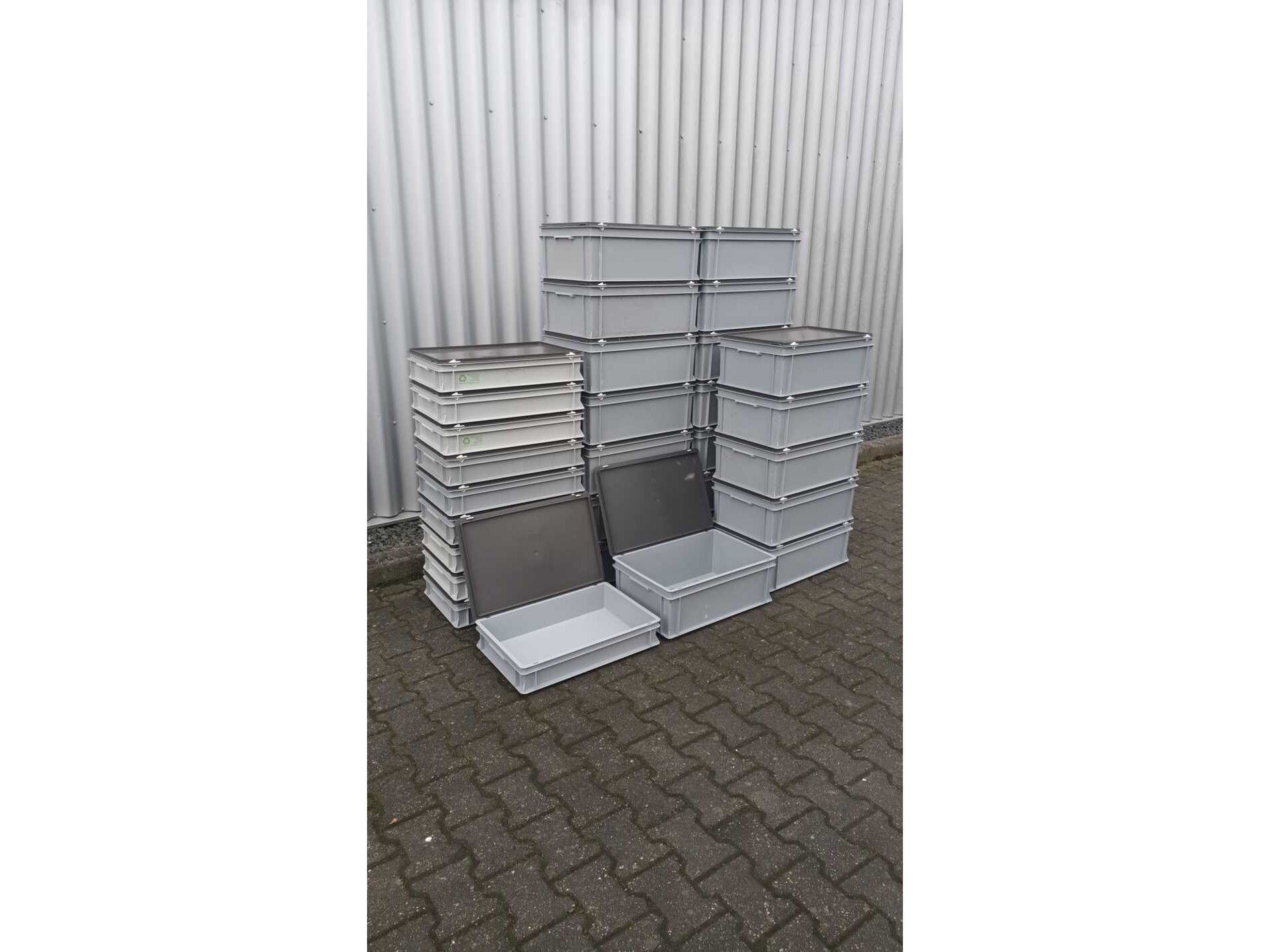 Merk: Engels Product: Bakken met deksel Kleur: Grijs / Chroom Materiaal: Kunststof Afmeting: 60x40x23 cm en 60x40x13 cm Conditie: Gebruikt Specificaties: Zeer nette Bakken met deksel , goed stapelbaar in 2 maten 60x40x23 cm en 60x40x13 cm zijn wel gebruikte bakken , kunnen dus een beschadiging aan zitten