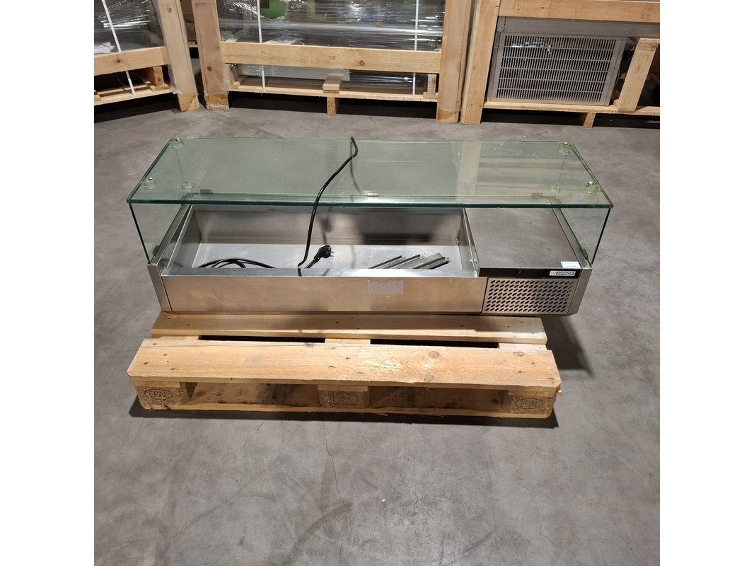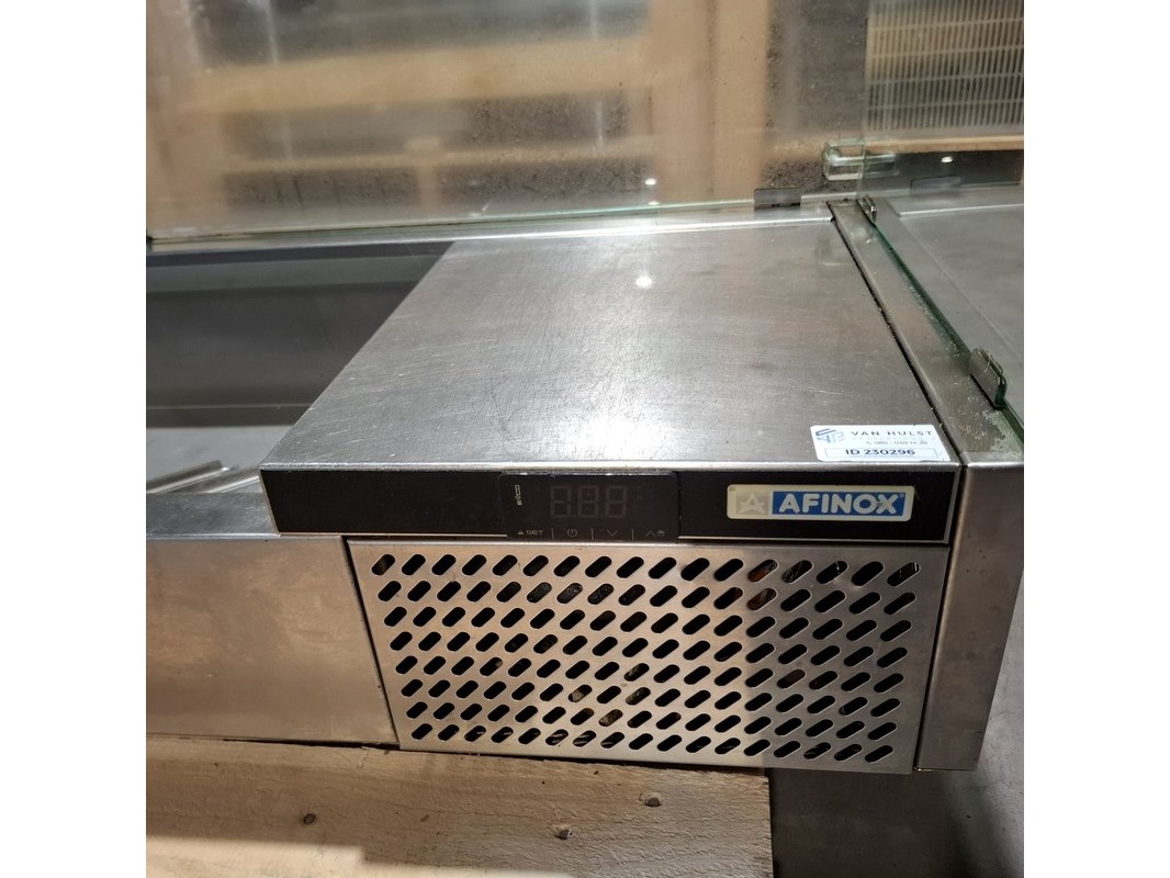 Merk: Afinox Product: Opzet koelvitrine Kleur: RVS Materiaal: RVS Afmeting: 130x39x43 BouwJaar: 2016 Conditie: Gebruikt Specificaties: 3 deurs