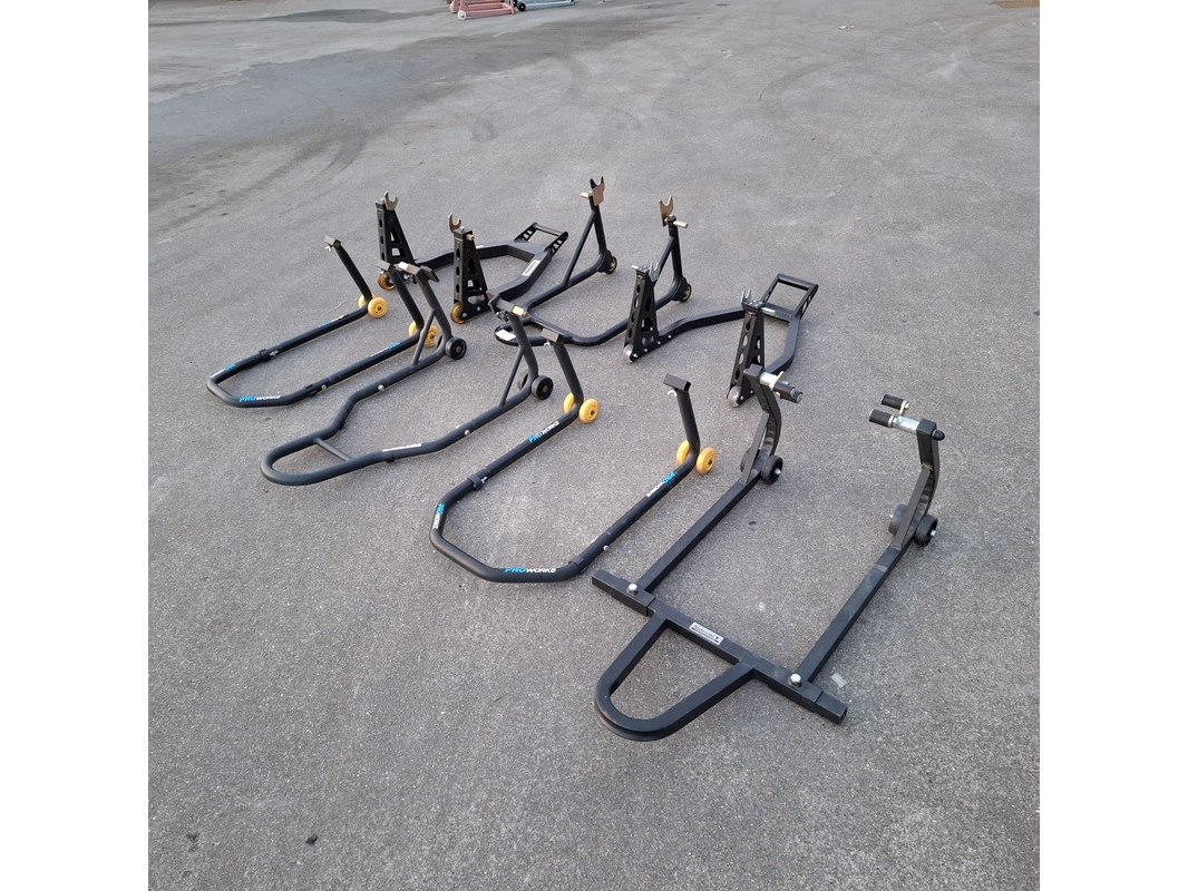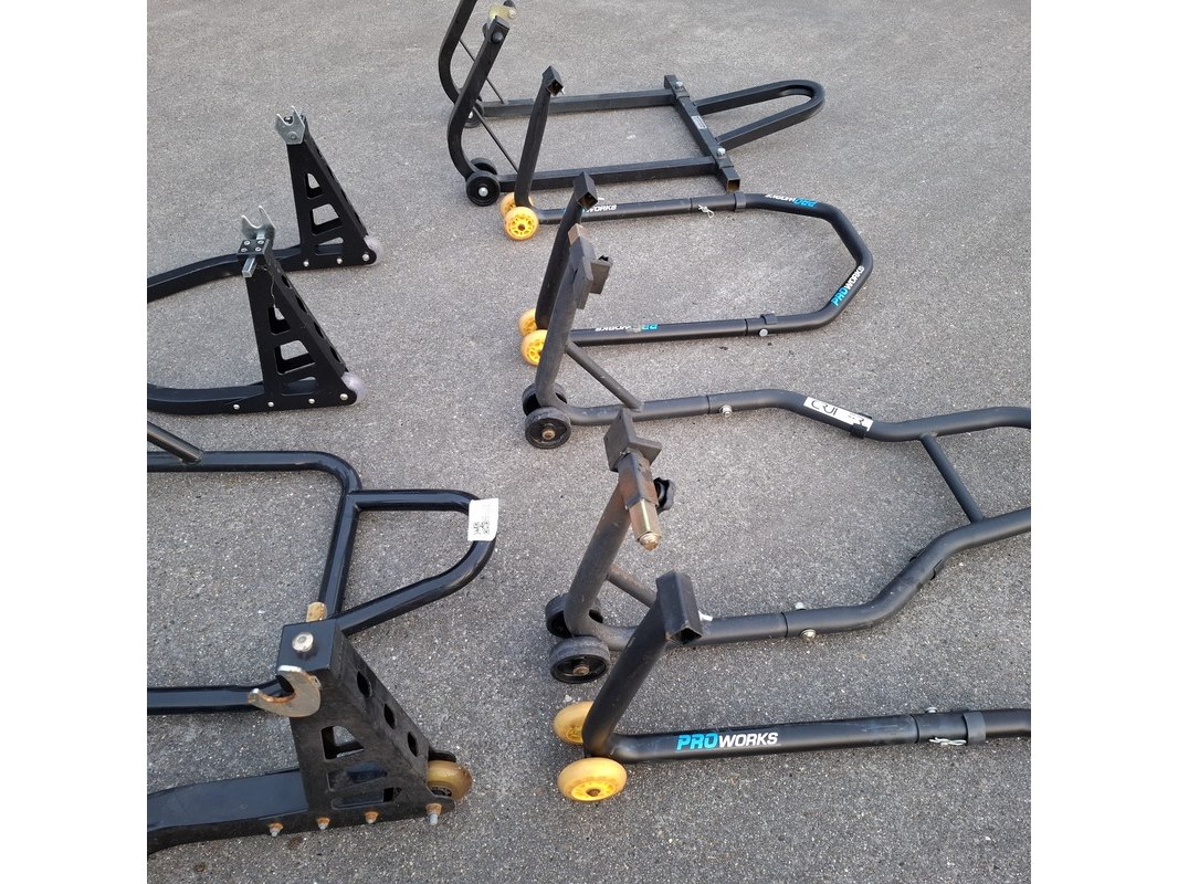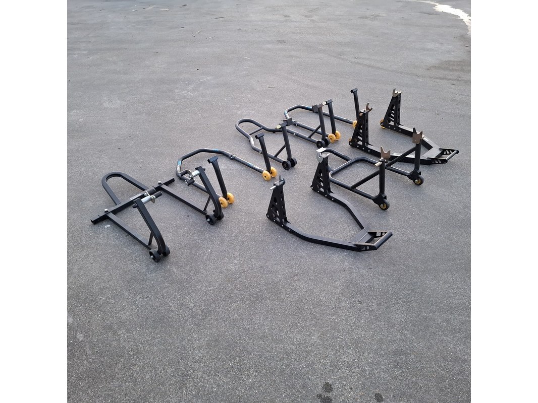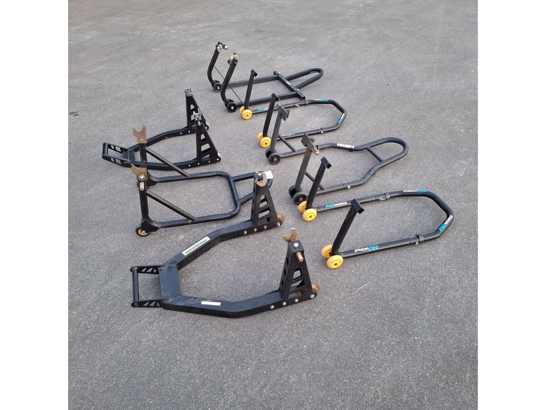 Merk: O.a. ProWorks en Cruizer Product: Paddockstand Kleur: Zwart Conditie: Gebruikt Specificaties: Diverse soorten en maten