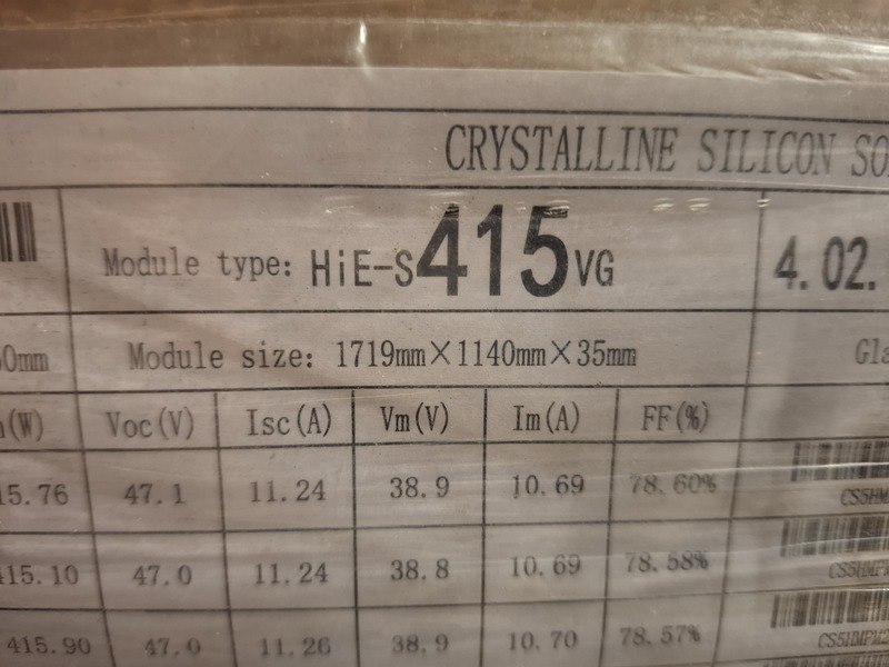 Merk: Hyundai Product: Zonnepaneel Afmeting: 1719x1140x35mm
