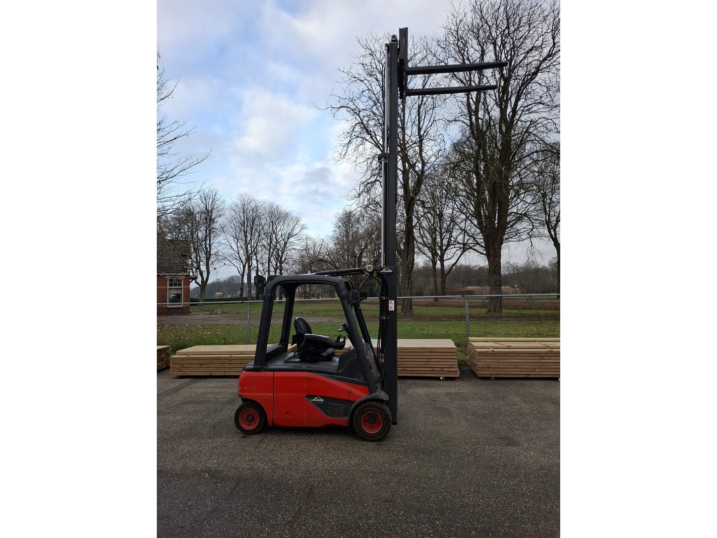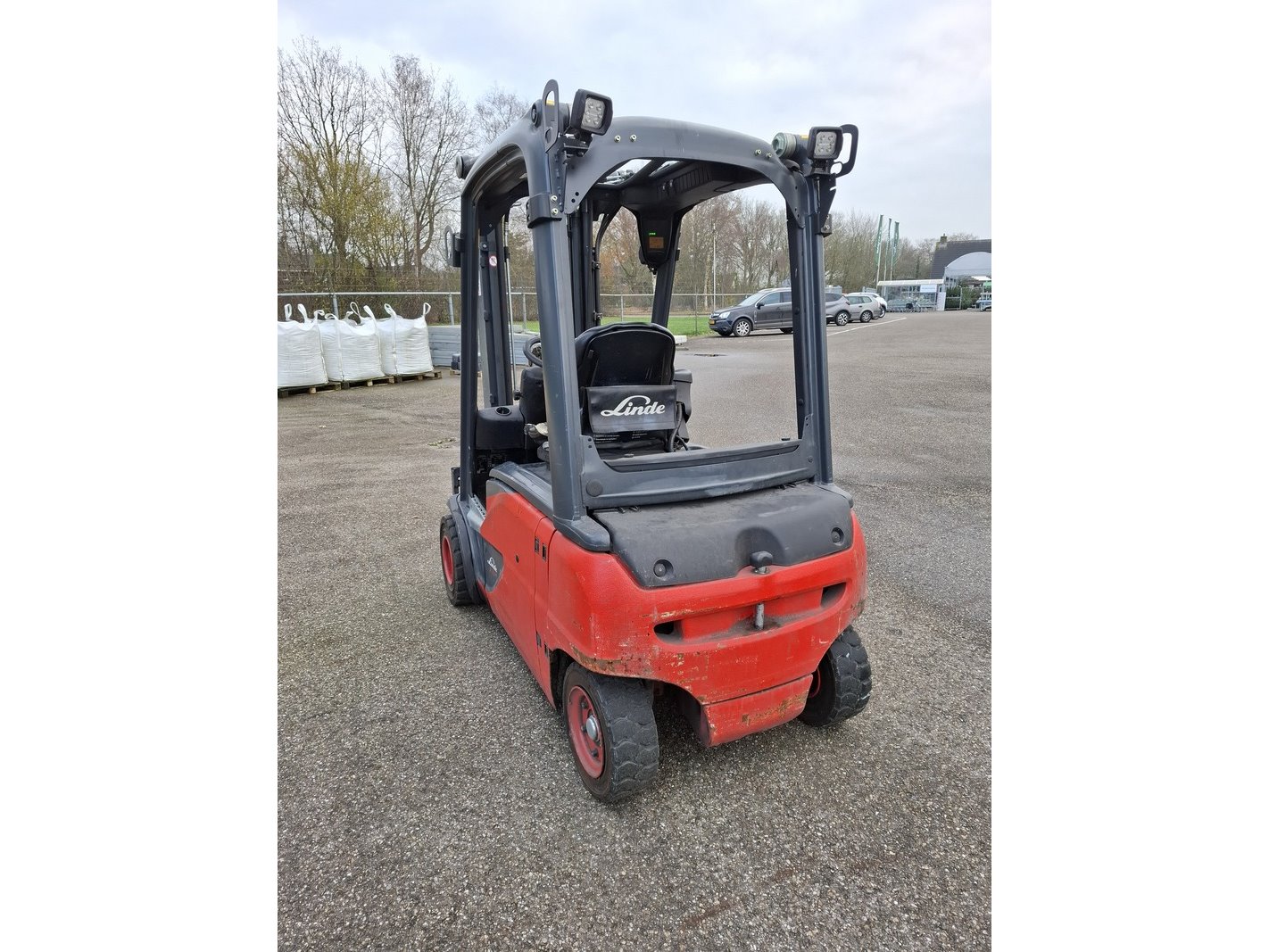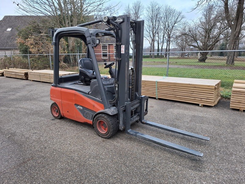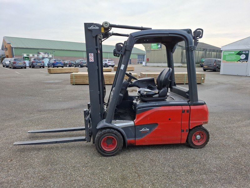 Merk: Linde Product: Elektrische heftruck Afmeting: max 2000 kilo BouwJaar: 2017 Specificaties: 48V, afgelezen urenstand 6764, geen kenteken 3-delige mast, free lift, side shift, max hefhoogte ca. 447cm, doorrijhoogte ca. 210cm, lepellengte ca. 120cm inclusief lader