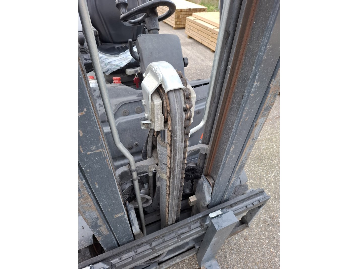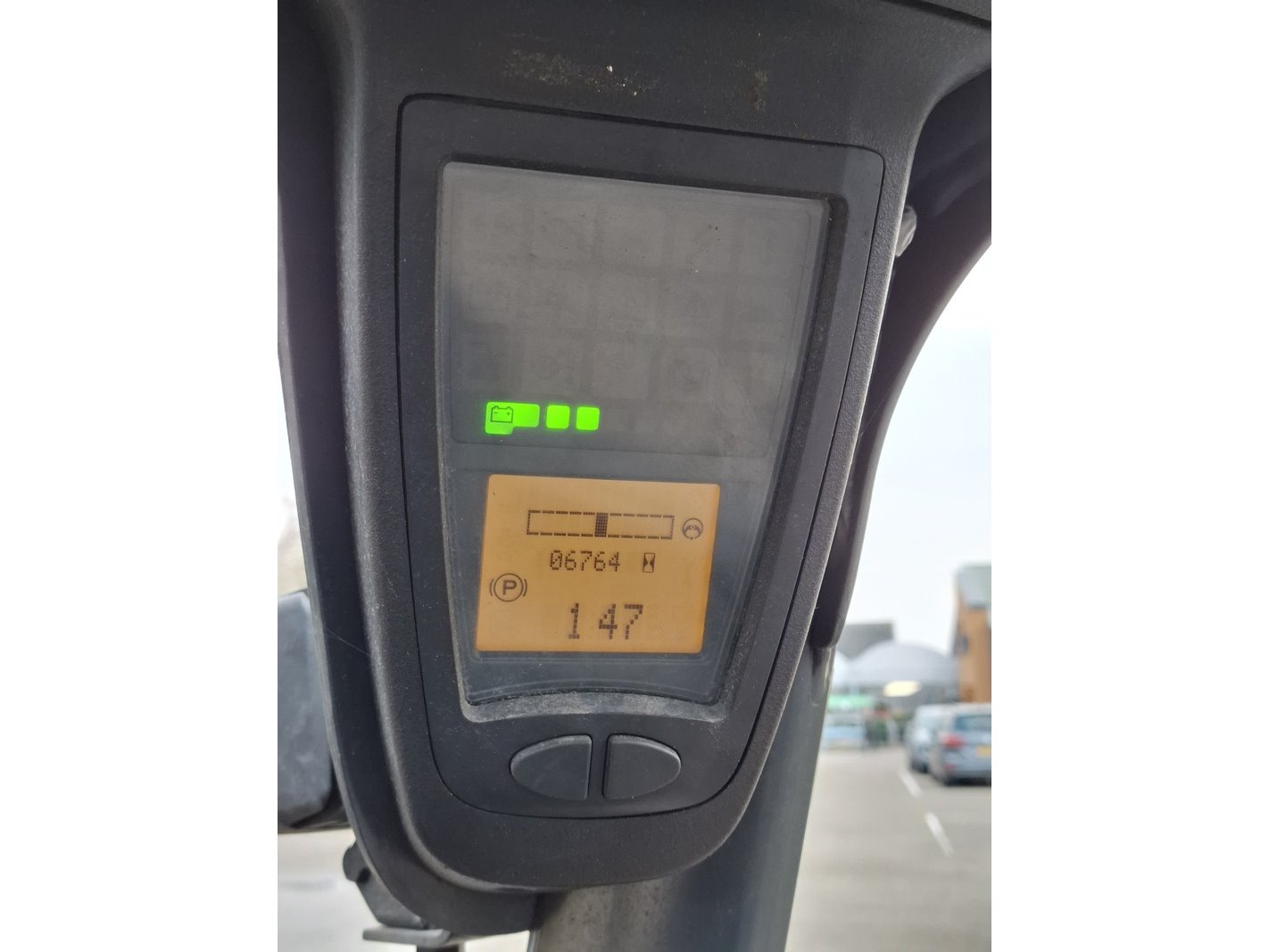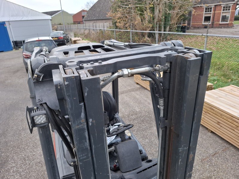 Merk: Linde Product: Elektrische heftruck Afmeting: max 2000 kilo BouwJaar: 2017 Specificaties: 48V, afgelezen urenstand 6764, geen kenteken 3-delige mast, free lift, side shift, max hefhoogte ca. 447cm, doorrijhoogte ca. 210cm, lepellengte ca. 120cm inclusief lader