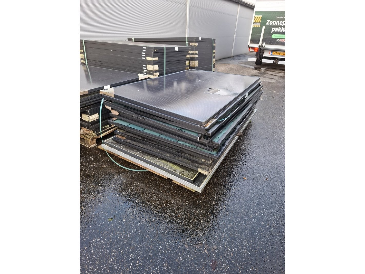 Product: Partij diverse zonnepanelen op 5x pallet Specificaties: diverse gebruikte en beschadigde zonnepanelen