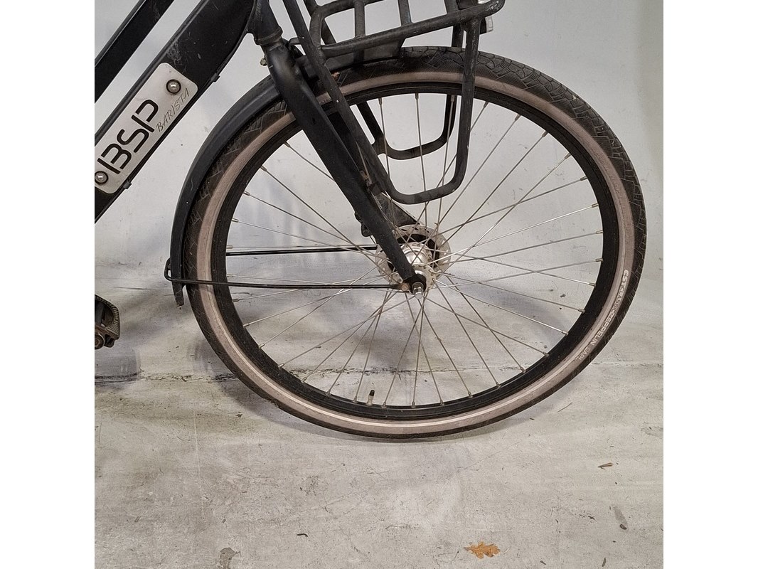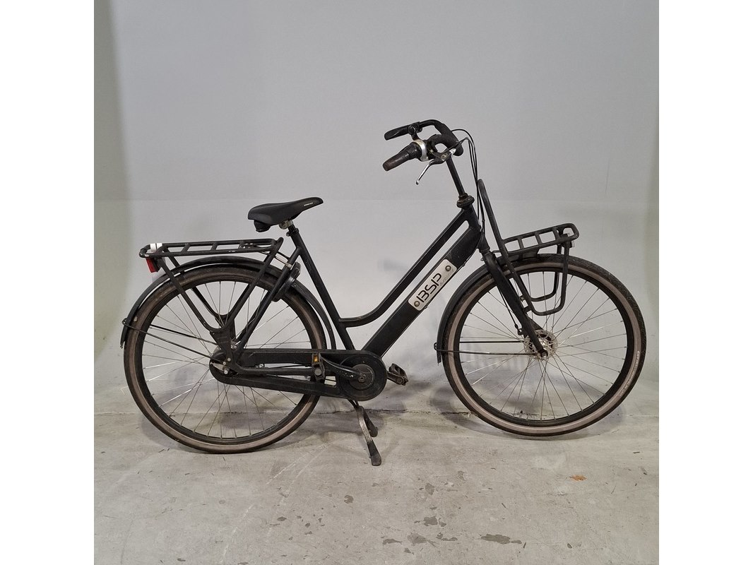 Merk: BSP Product: Damesfiets Afmeting: Framemaat ca. 57 cm Conditie: Gebruikt Specificaties: 28 inch 7 versnellingen Achterband leeg Rondom diverse beschadigingen Slot afgebroken