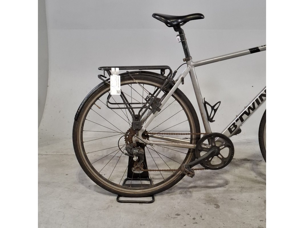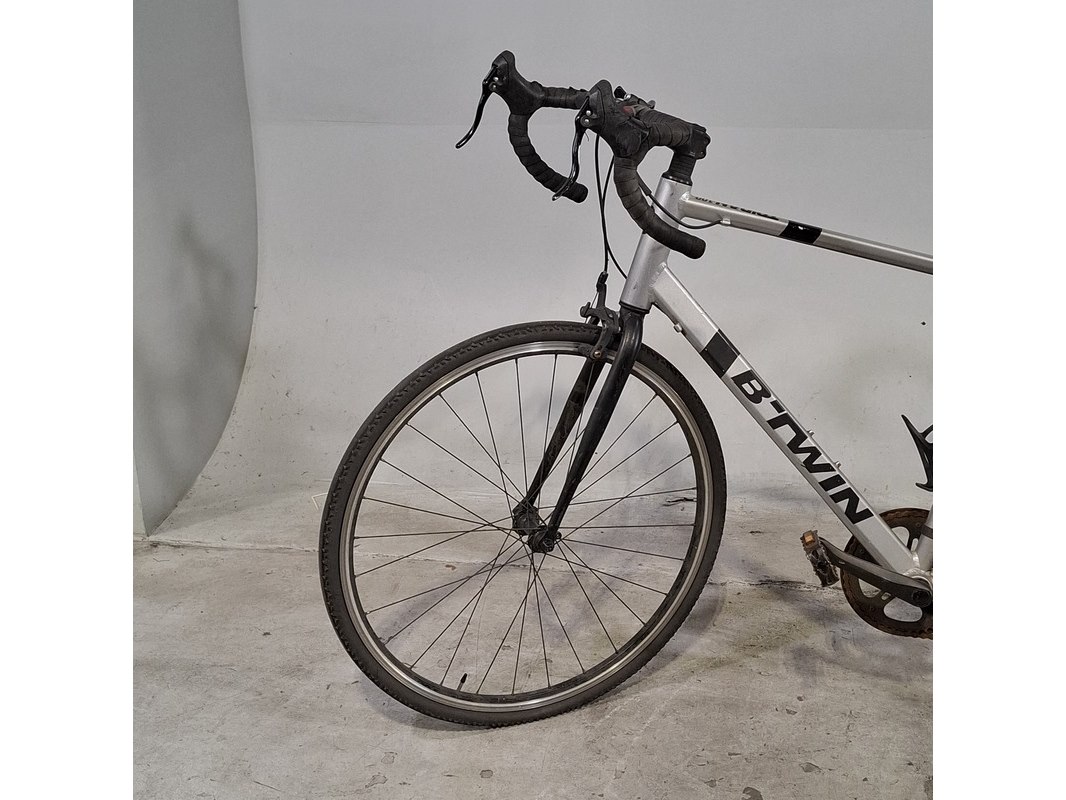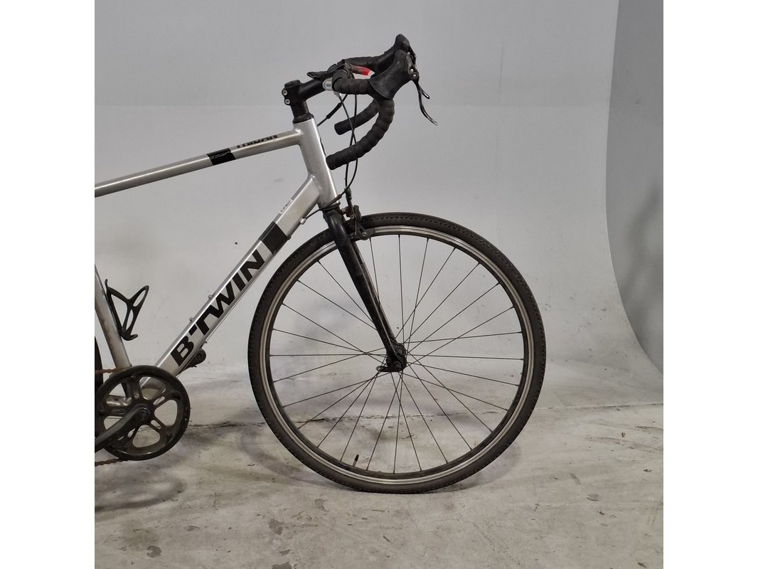 Merk: Btwin Product: Racefiets Afmeting: Framemaat ca.53 cm Conditie: gebruikt Specificaties: 6 Versnellingen Handgrepen stuk