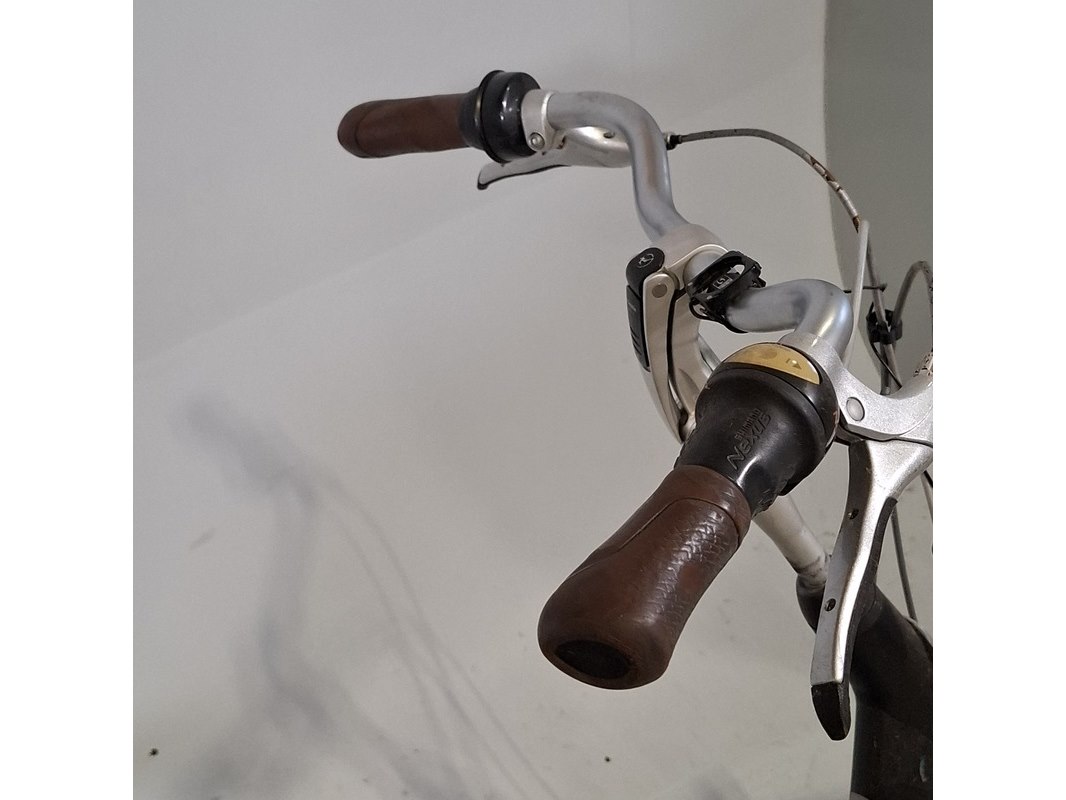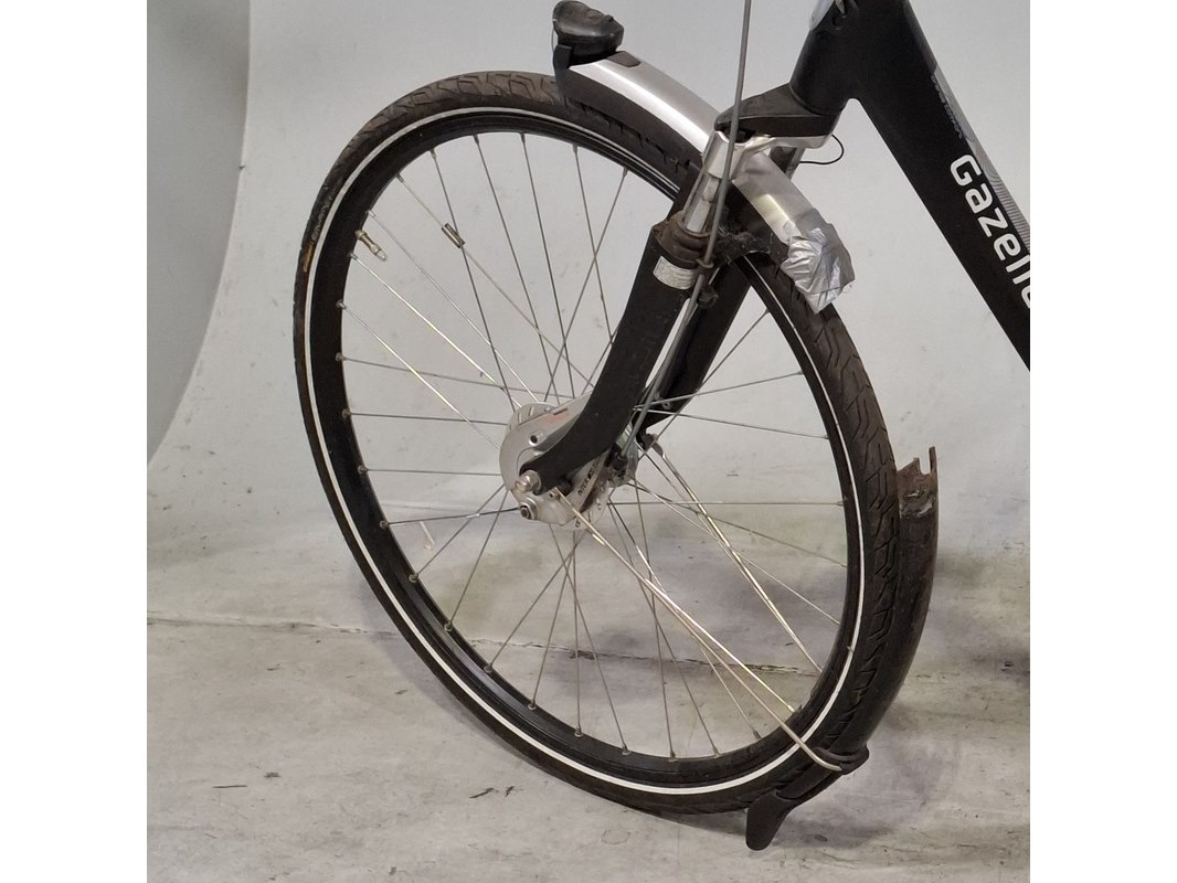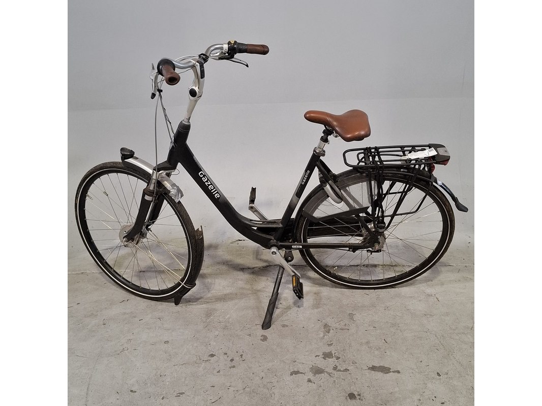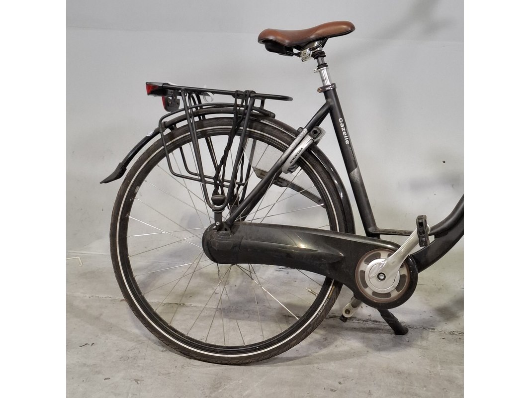 Merk: Gazelle Product: Damesfiets Afmeting: Framemaat ca. 53 cm Conditie: gebruikt Specificaties: 7 versnellingen Geveerde voorvork en zadelpen Spatbord voor gebroken Exclusief sleutels, slot is doorgezaagd.