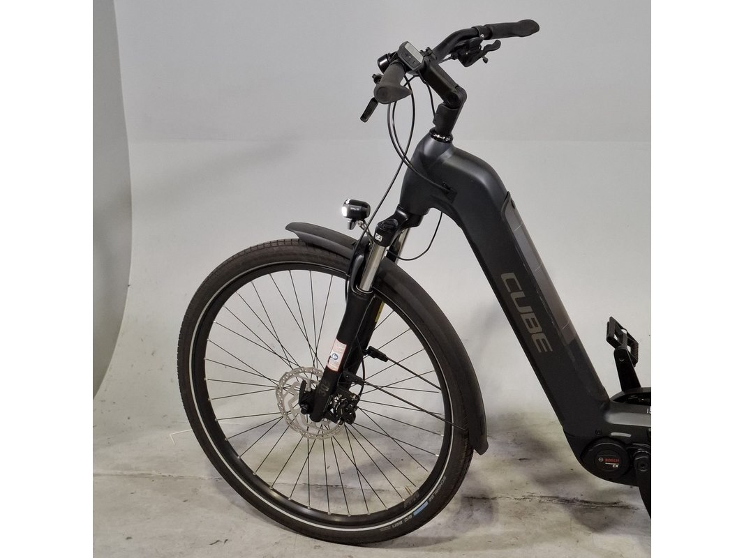 Merk: Cube Product: Elektrische damesfiets Afmeting: Framemaat ca. 56 cm Conditie: gebruikt Specificaties: Geveerde voorvork 9 versnellingen Schijfrem voor en achter Inclusief fietscomputer en accu Afgelezen tellerstand 3534. Uitgerust met Bosch PerformanceLine CX middenmotor Exclusief acculader.