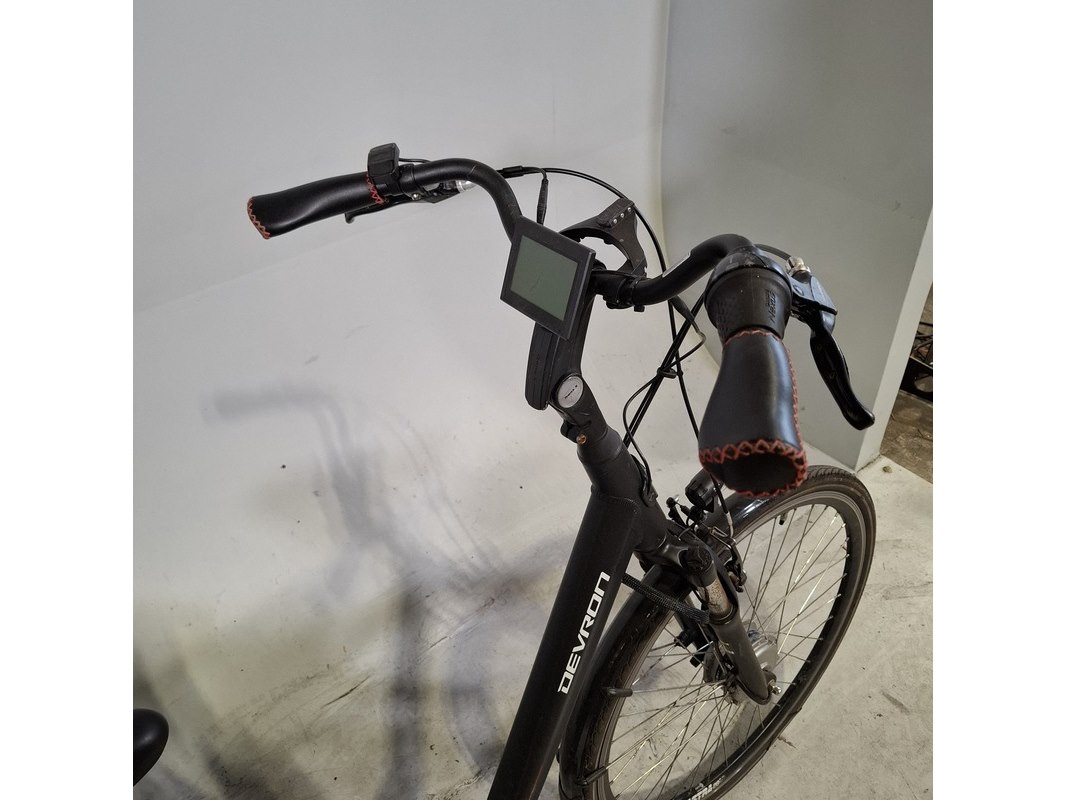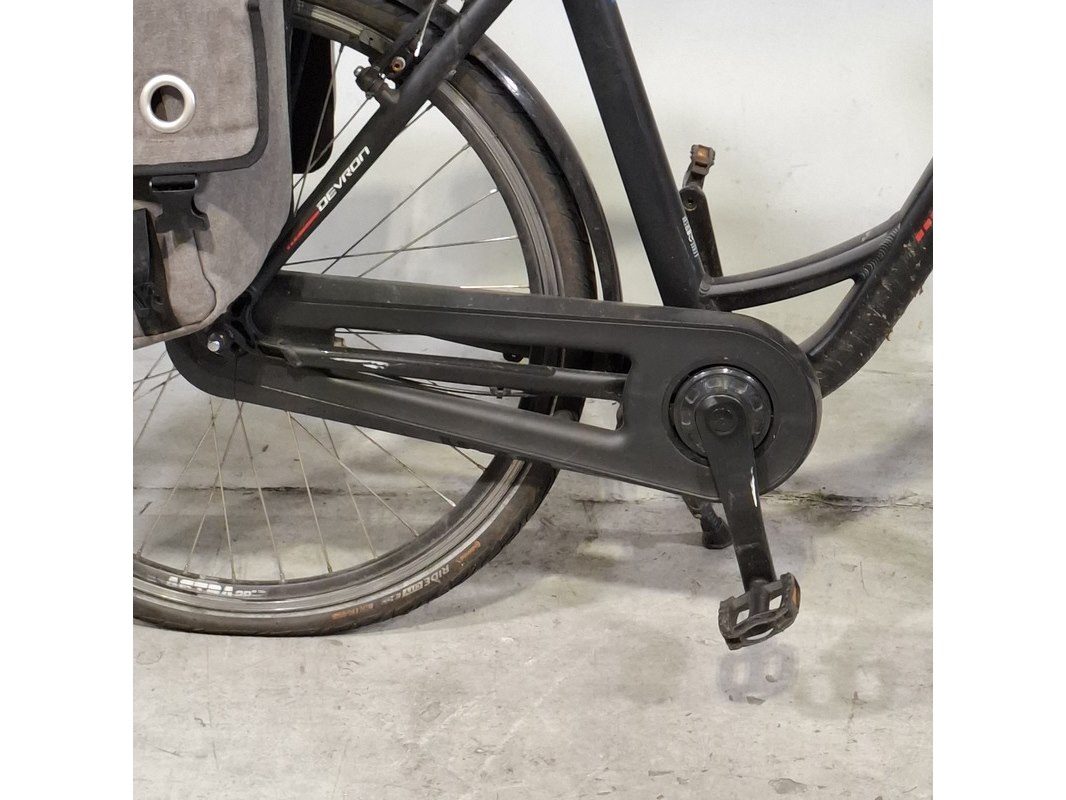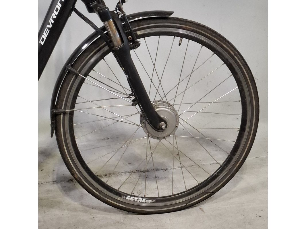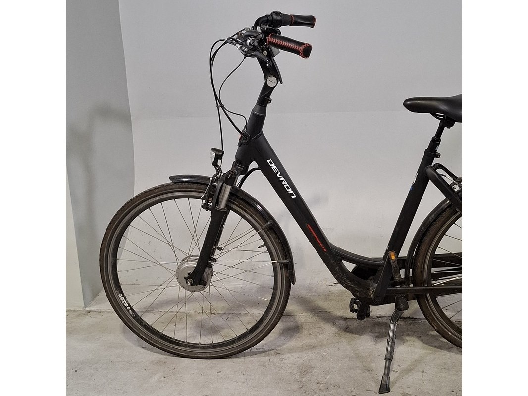 Merk: Devron Product: Elektrische damesfiets Afmeting: Framemaat ca. 53 cm Specificaties: 7 versnellingen Geveerde voorvork en zadelpen Inclusief fietscomputer en accu. Exclusief acculader en (accu) sleutel, accu staat op slot.