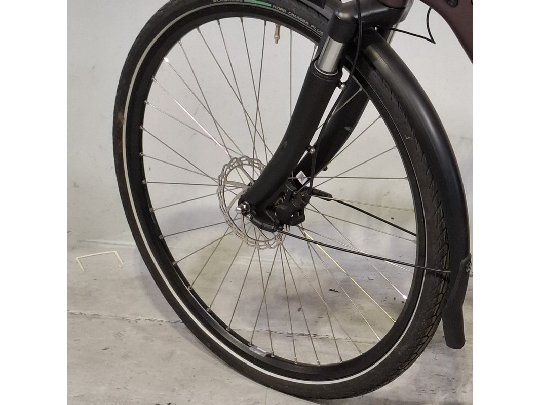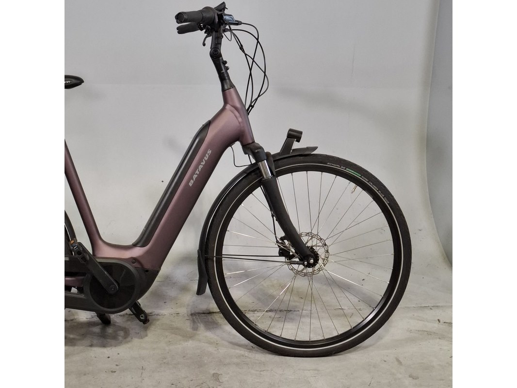 Merk: Batavus Product: Elektrische damesfiets Afmeting: Framemaat ca. 57 cm Conditie: gebruikt Specificaties: 8 versnellingen Geveerde voorvork en zadelpen Schijfremmen voor en achter Inclusief fietscomputer en accu. Afgelezen tellerstand 819.6 Inclusief accu. Exclusief acculader.