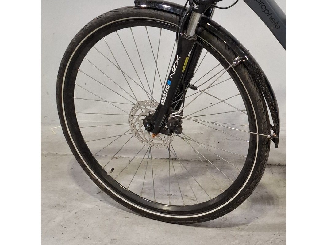 Merk: Prophete Product: Elektrische damesfiets Afmeting: Framemaat ca. 50 cm Specificaties: 8 versnellingen Geveerdre voorvork Schijfrem voor en achter Inclusief fietscomputer (gebroken) en accu Exclusief acculader en sleutel accu, Uitgerust met Blaupunkt achterwiel motor