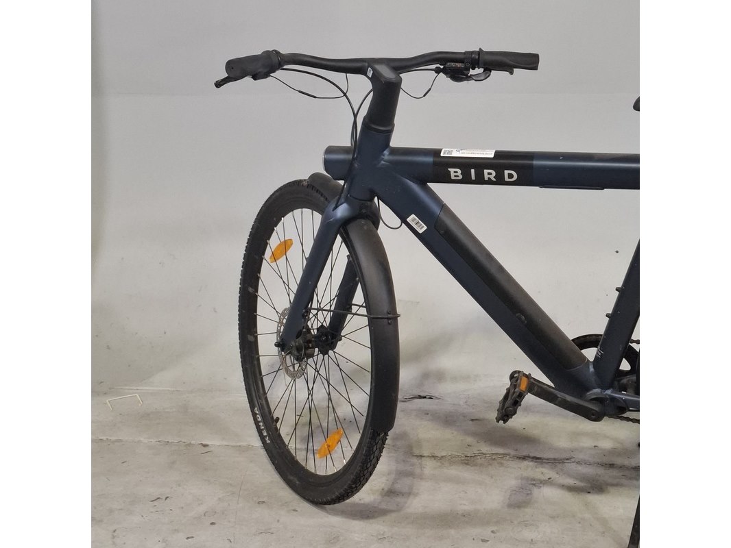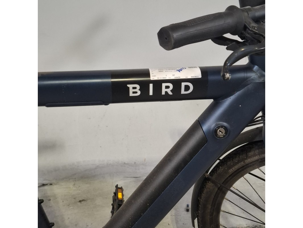 Merk: Bird Product: Elektrische herenfiets Afmeting: Framemaat ca. 56 cm Specificaties: 7 versnellingen Met achterwiel motor Aanwezigheid accu onbekend. Fiets gaat niet aan. Exclusief sleutel accubak, staat op slot.