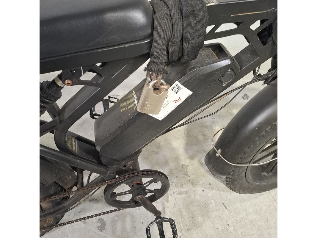 Product: Fatbike Specificaties: Capaciteit 150 kg 250W Maximale snelheid 25 km/u Geveerde voorvork Schijfrem voor en achter Inclusief fietscomputer en accu. Acculader vermoedelijk defect. Sleutel accu ontbreekt. Accu staat op slot.