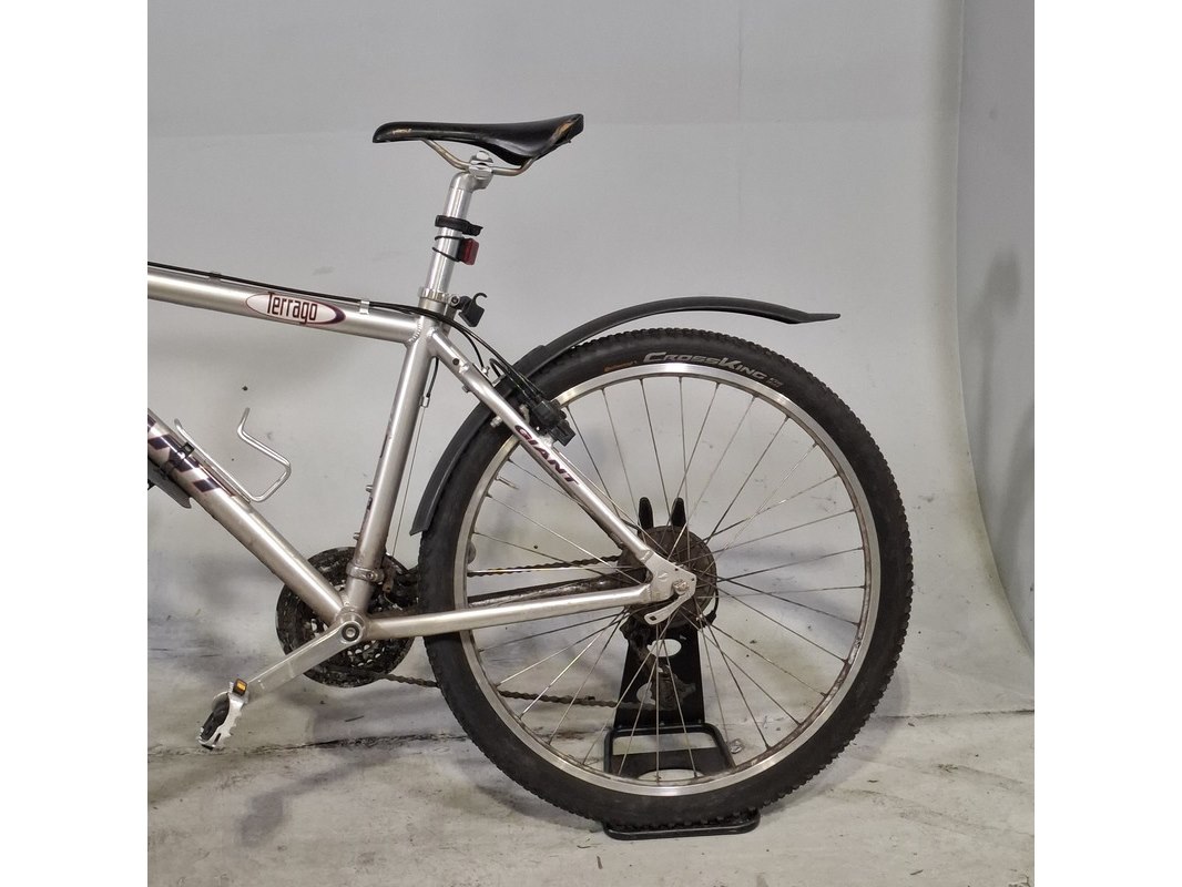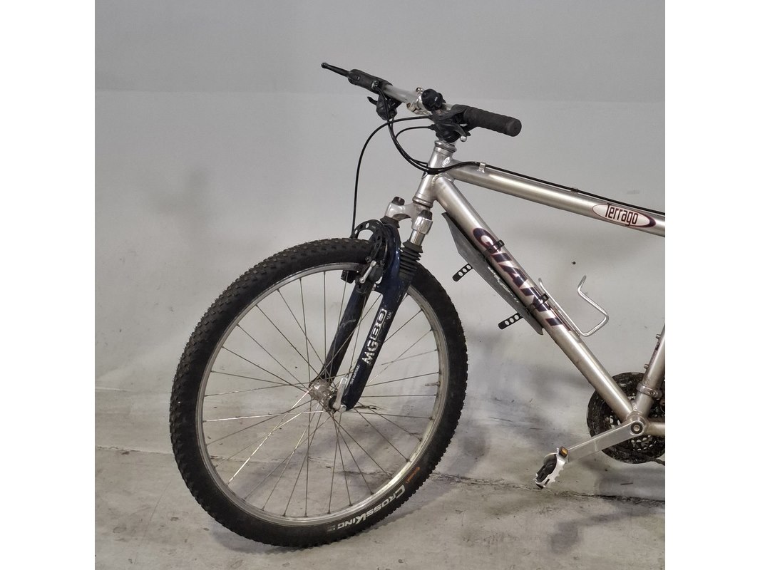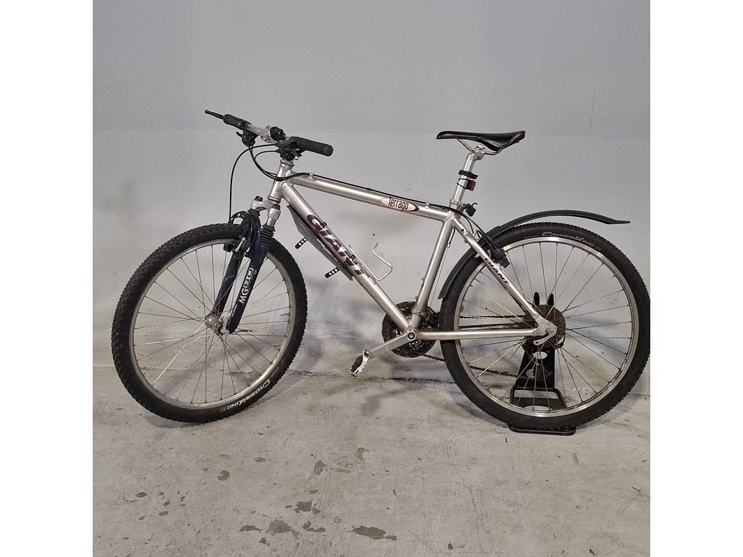 Merk: Giant Product: Kinder mountainbike Afmeting: Framemaat ca. 42 cm Specificaties: Wielmaat 26 inch Geveerde voorvork 3x8 versnellingen