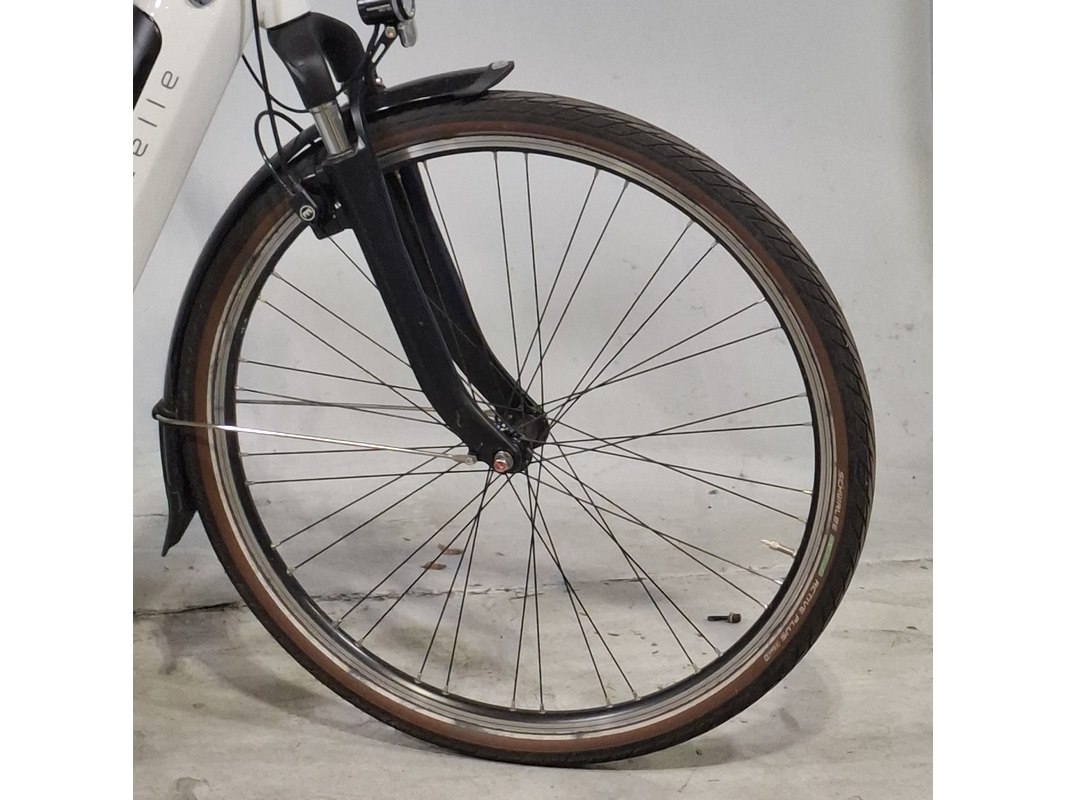 Merk: Gazelle Product: Elektrische damesfiets Afmeting: Framemaat ca. 49 cm Specificaties: 7 versnellingen Geveerde voorvork en zadelpen Exclusief fietscomputer en acculader. Exclusief sleutels.