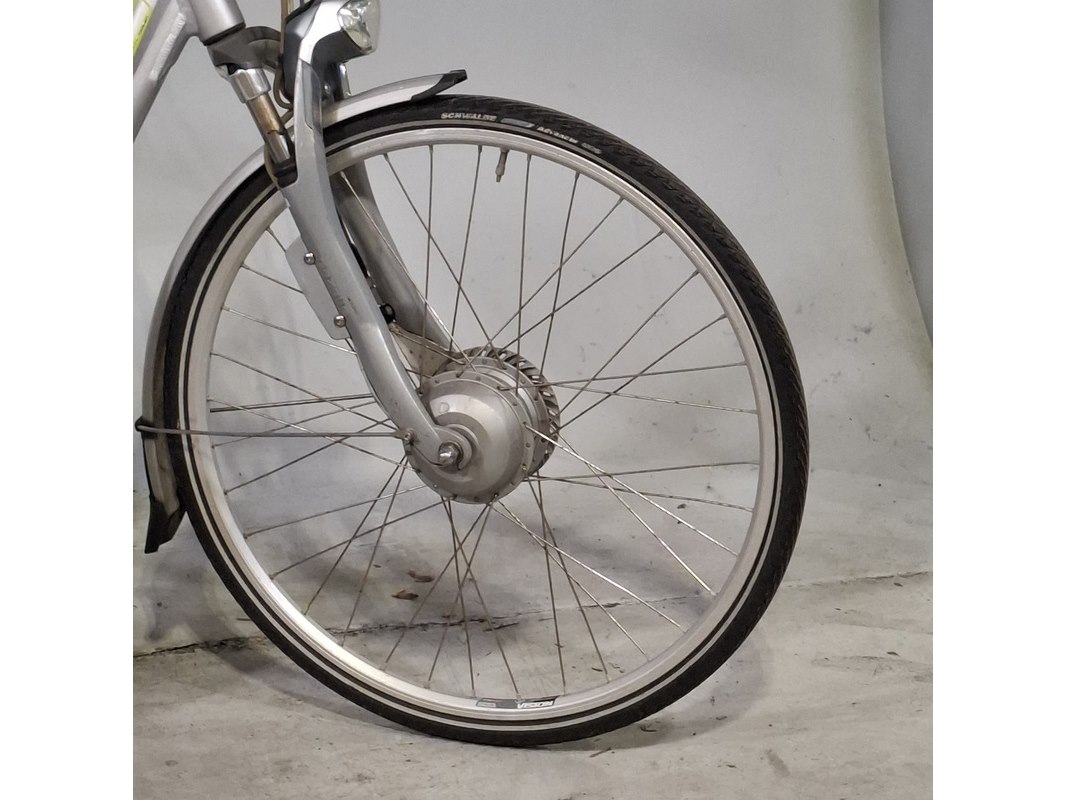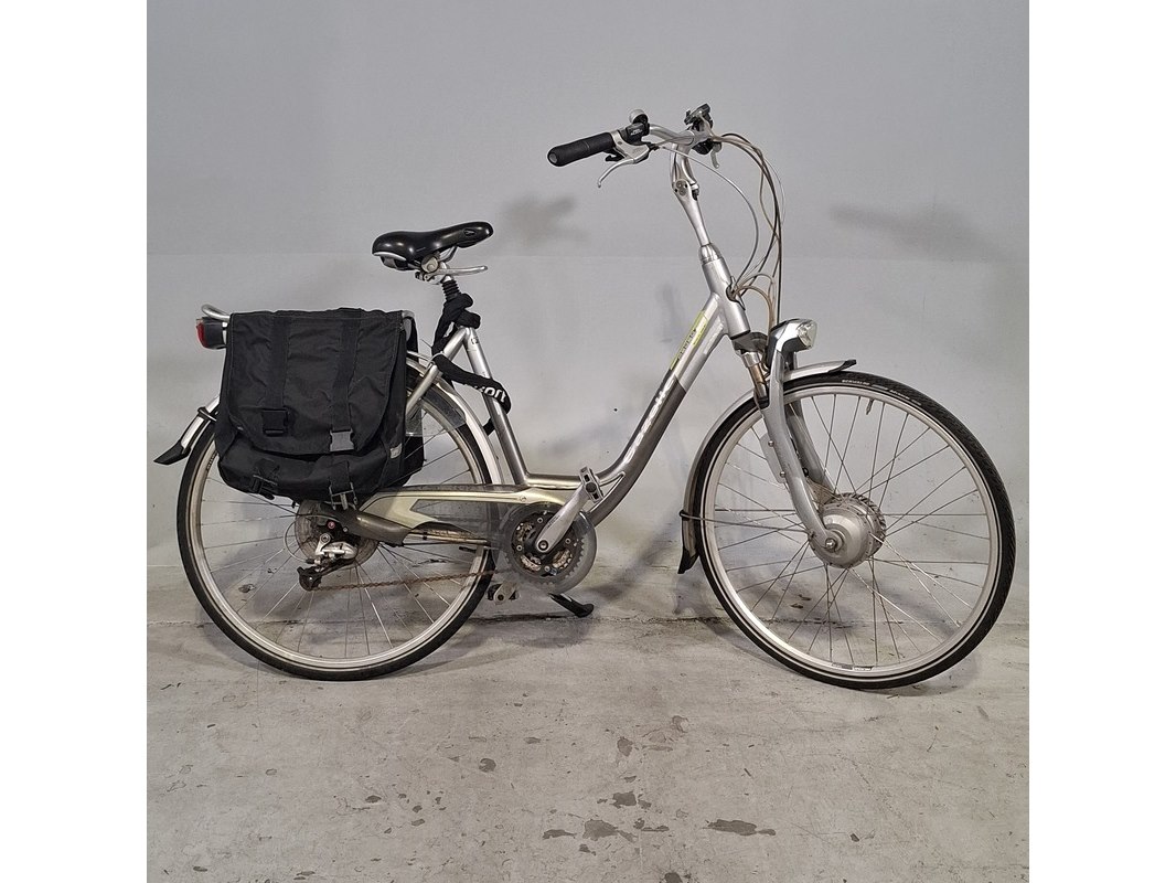 Merk: Gazelle Product: Elektrische damesfiets Afmeting: Framemaat ca. 53 cm Specificaties: 8 versnellingen Geveerde voorvork en zadelpen Inclusief fietscomputer en accu, gaat niet aan. Exclusief acculader en sleutel. Accu staat op slot.
