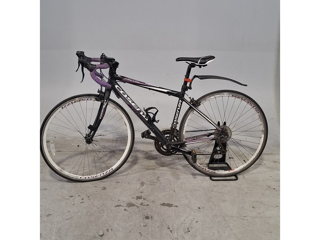 Merk: Cosenza Product: Racefiets Afmeting: Framemaat ca. 44 cm Conditie: gebruikt Specificaties: Uitgerust met Shimano Claris derailleur Shimano 8 speed versnellingsysteem Cosenza Elite wielen