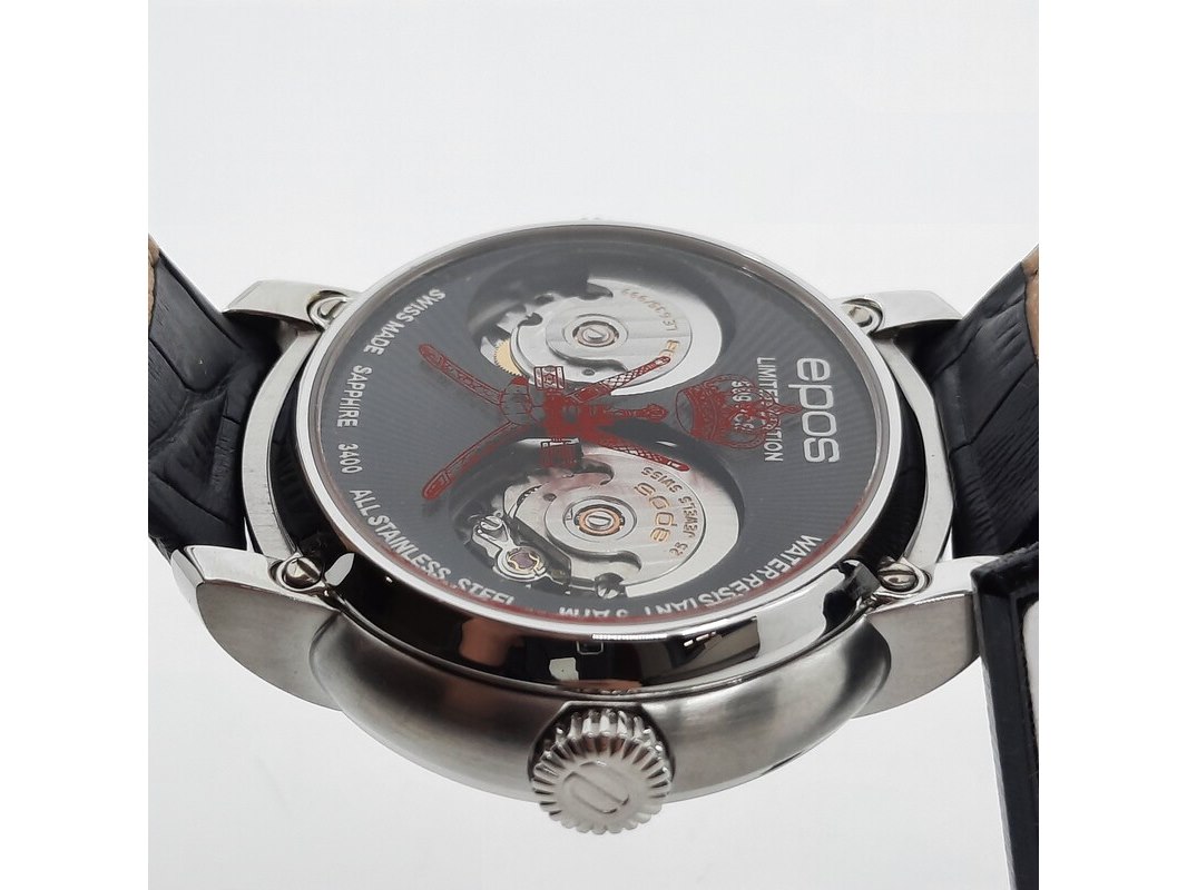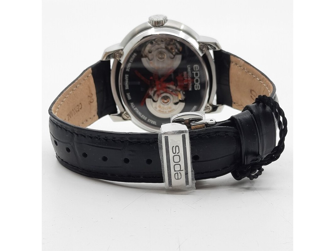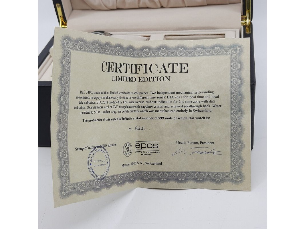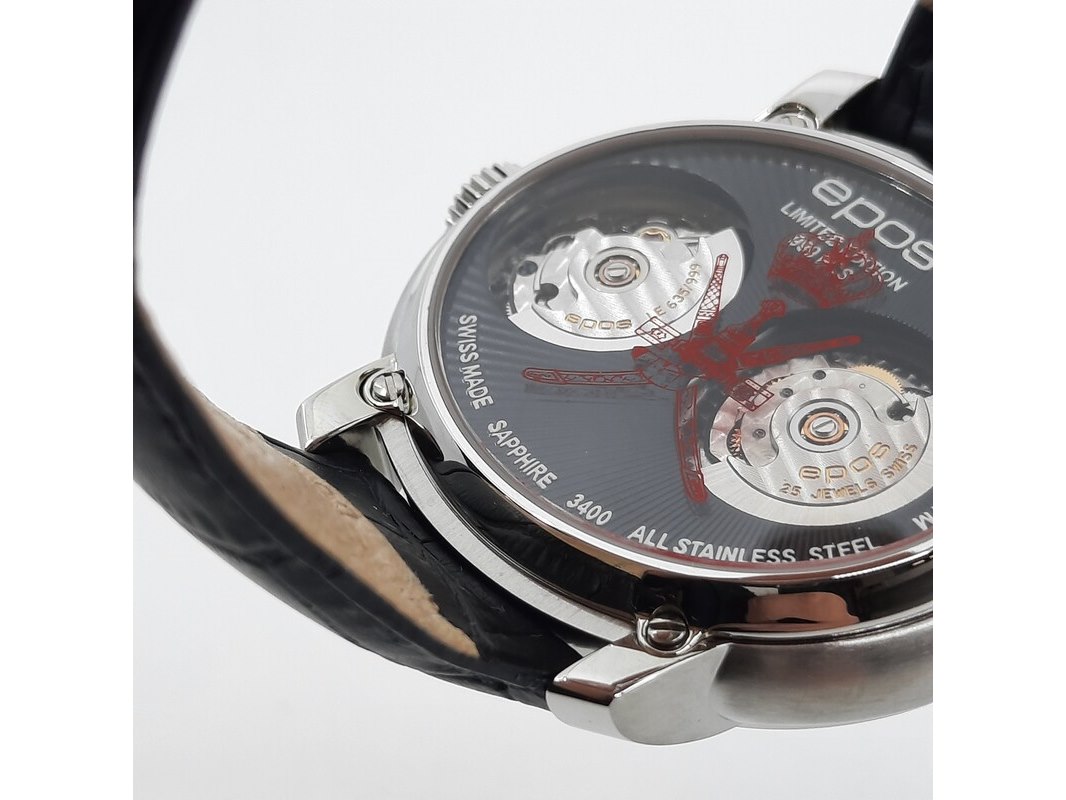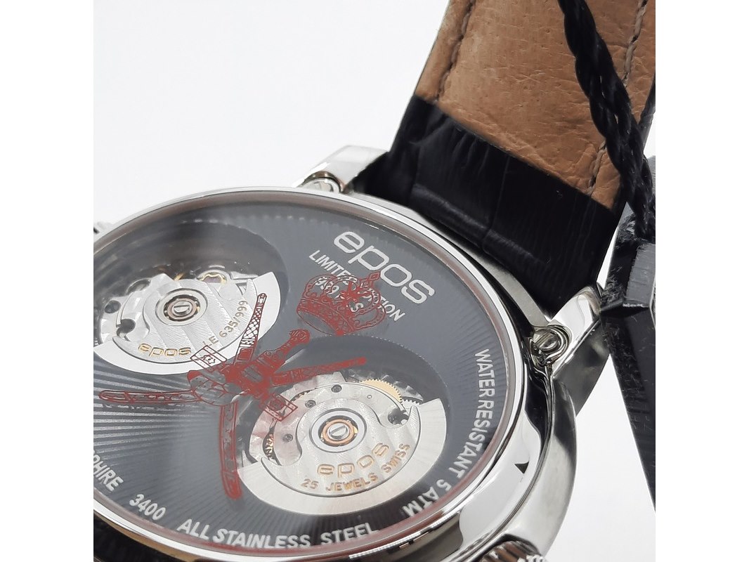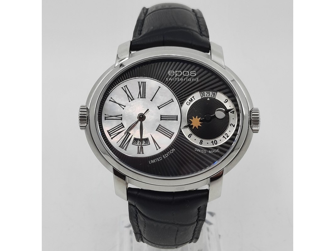 Merk: Epos Product: Heren polshorloge Conditie: gebruikt Specificaties: Een stalen heren polshorloge, Epos 3400. Aan lederen band. Met doos en documentatie.