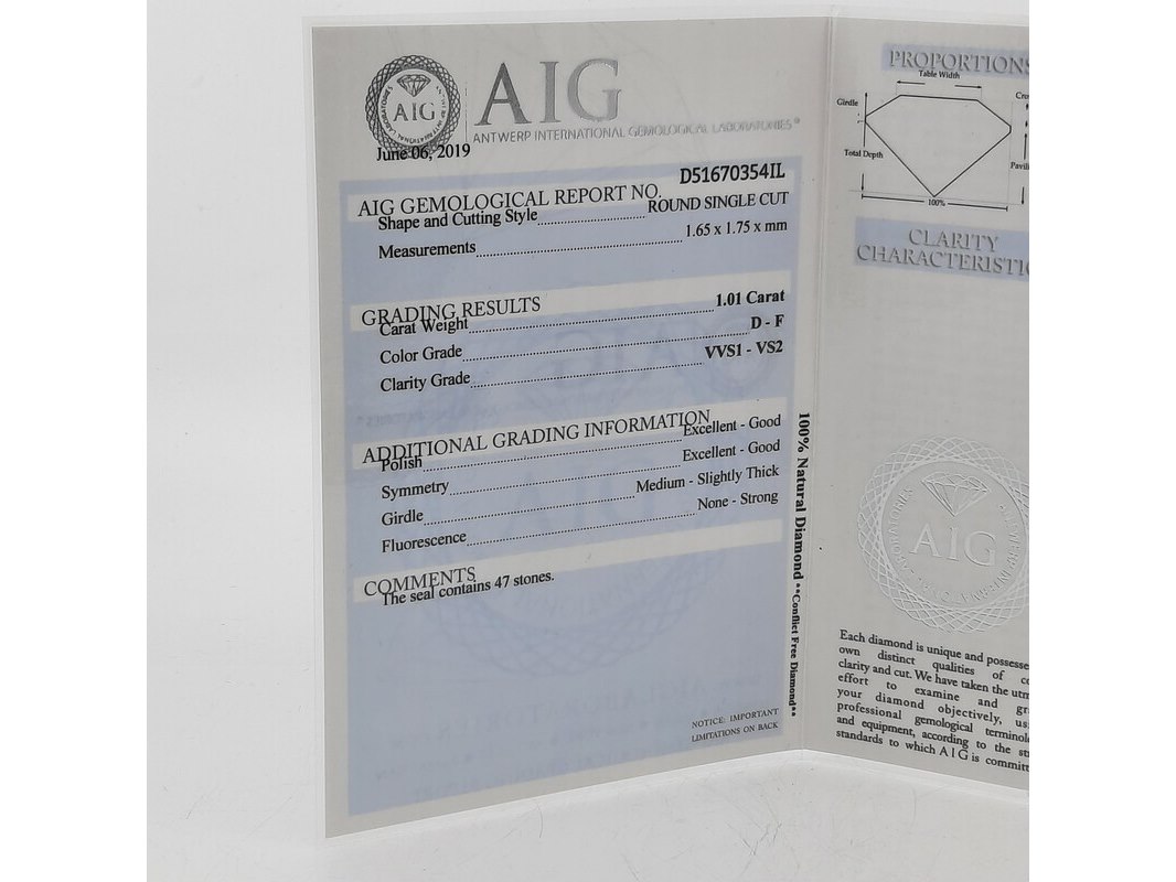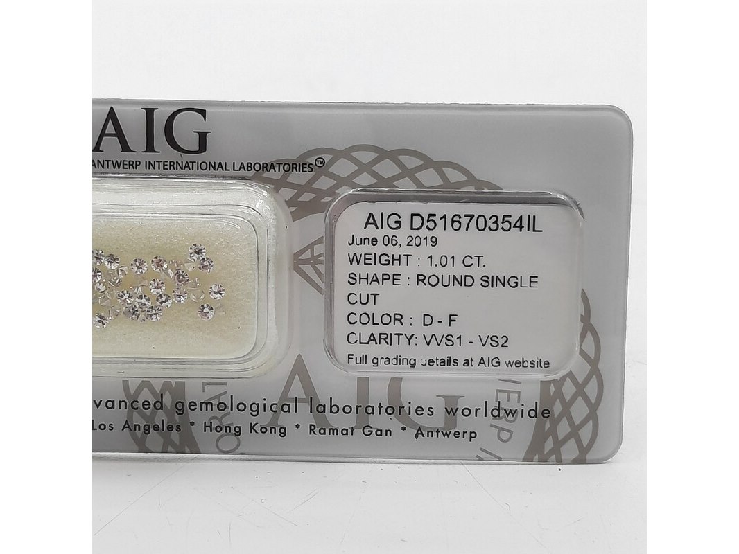 Product: Achtkant geslepen diamanten, totaal 1,01 karaats (VVS-VS) Specificaties: Een lot achtkant geslepen diamanten, kleur D-F, zuiverheid Vvs-Vs, totaal 1,01 kt. met AIG certificaat.
