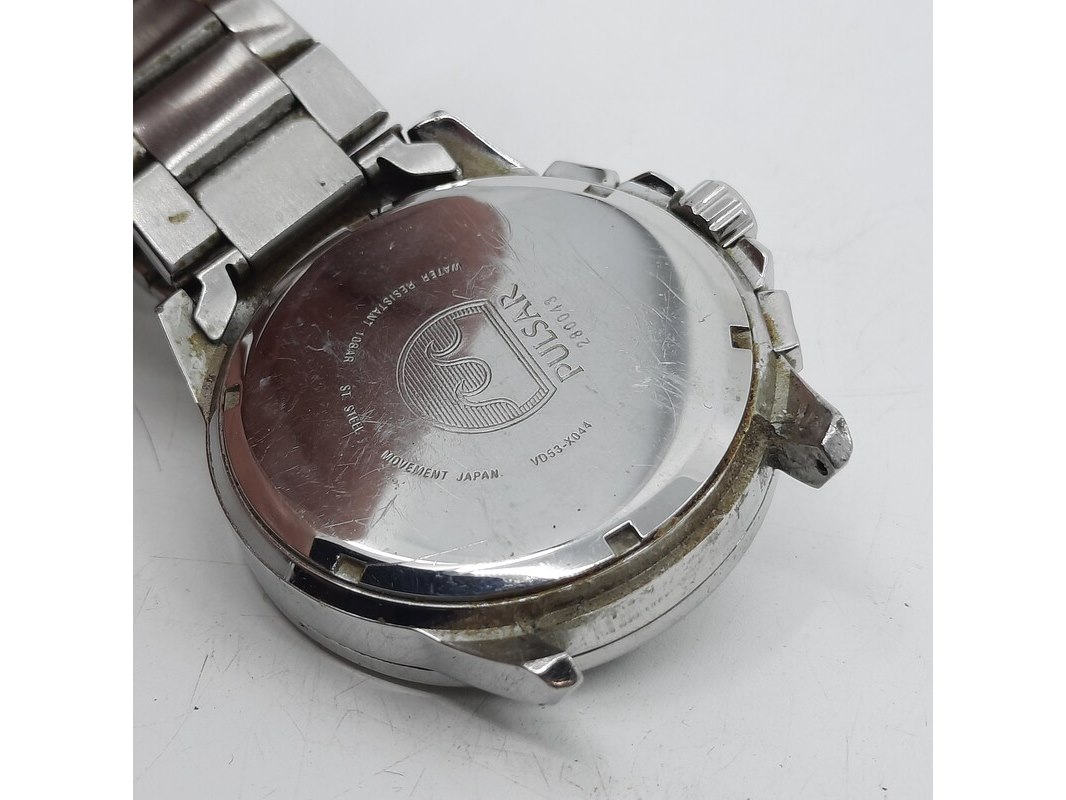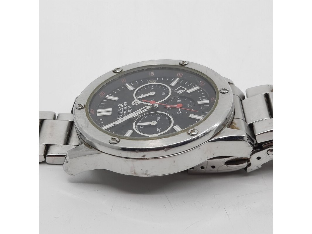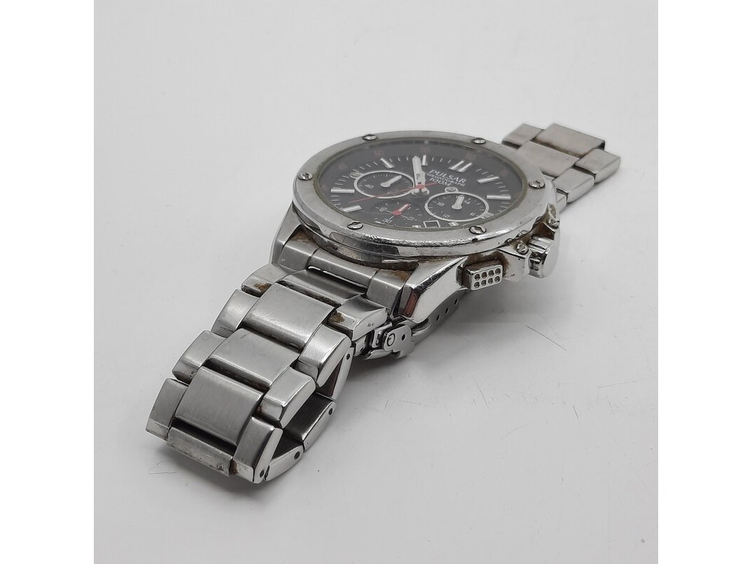 Merk: Pulsar Product: Heren polshorloge Conditie: gebruikt Specificaties: Een onedel heren polshorloge Pulsar, quartz chronograaf met stalen band. Band gebroken.
