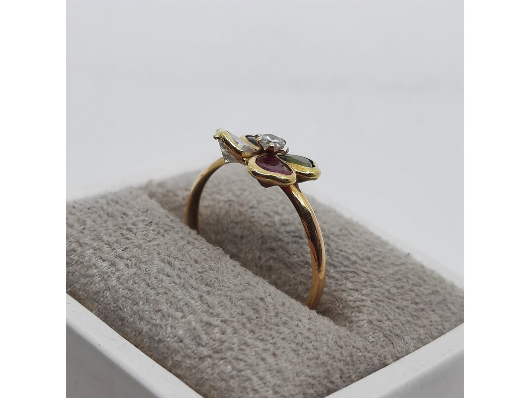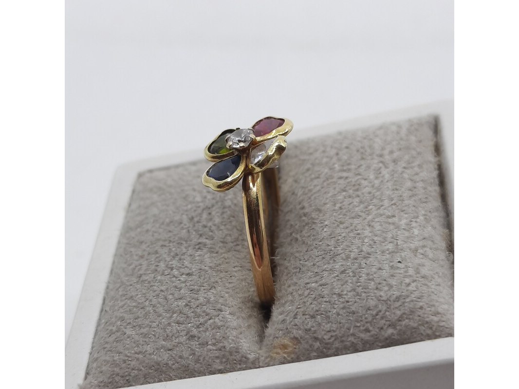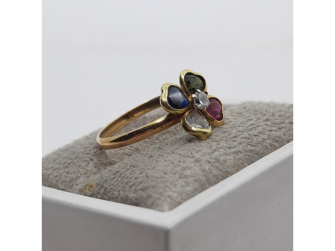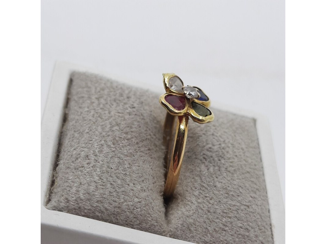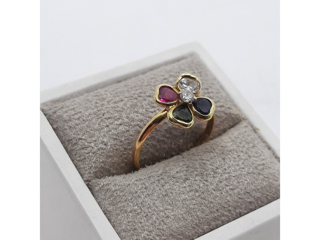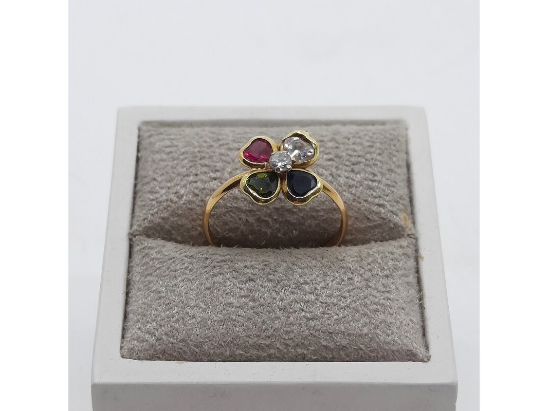 Product: Ring, 18 karaats Afmeting: Ringmaat ca. 15 (49) Conditie: gebruikt Specificaties: Een 18 karaats geelgouden ring met zirkonia. Gewicht ca. 1,045 gram.