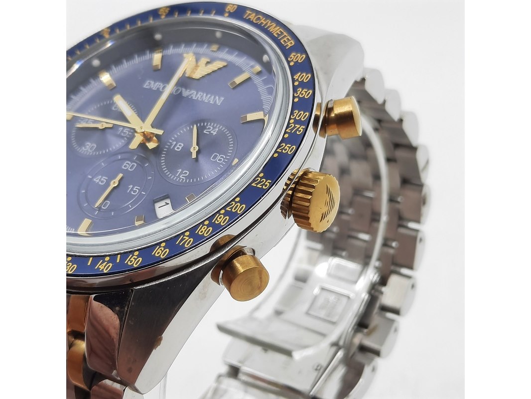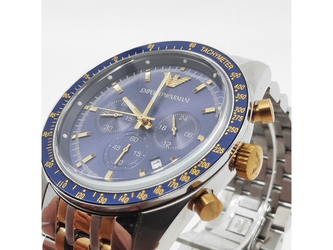 Merk: Armani Product: Heren polshorloge Conditie: gebruikt Specificaties: Een onedel heren polshorloge Armani, model AR 6088, quartz chronograaf met doosje.