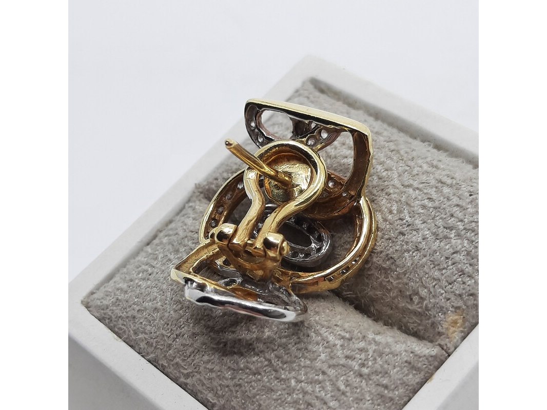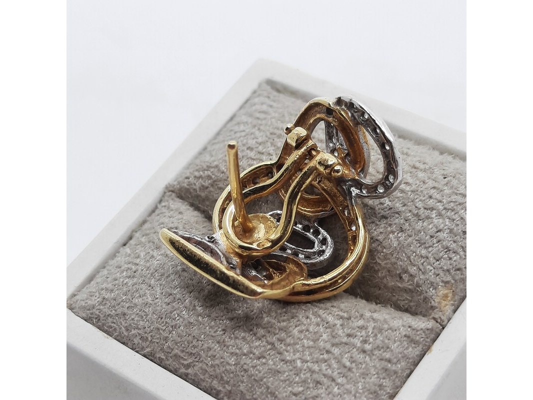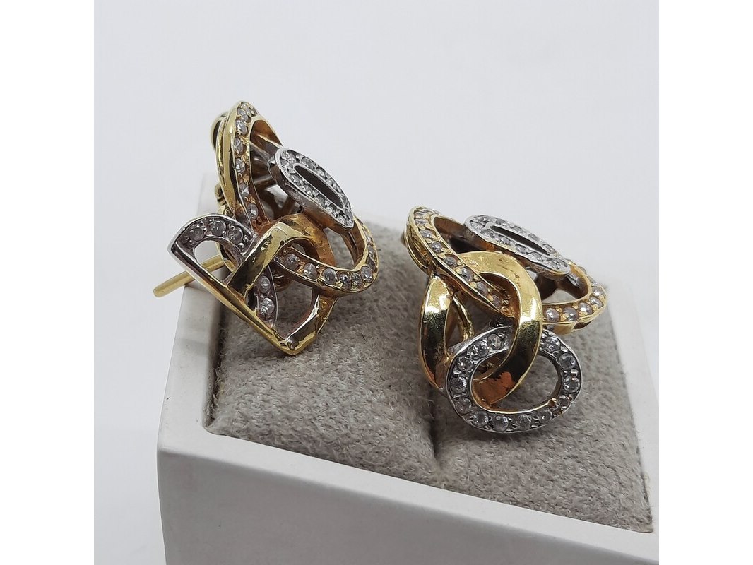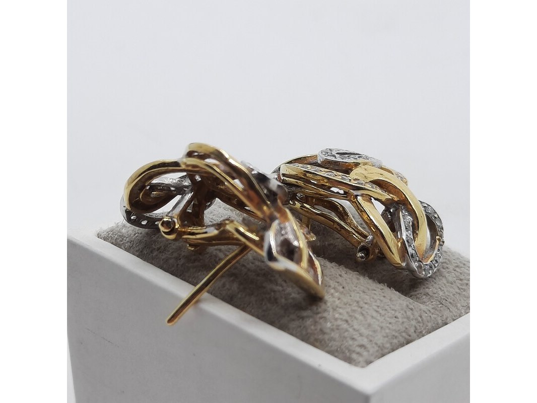 Product: Paar oorhanger, 18 karaats Conditie: gebruikt Specificaties: Een paar 18 karaats wit en geelgouden oorclips met zirkonia. Gewicht samen ca. 11,55 gram.