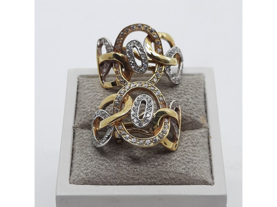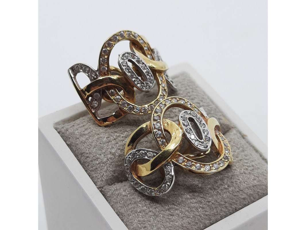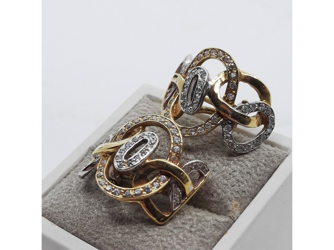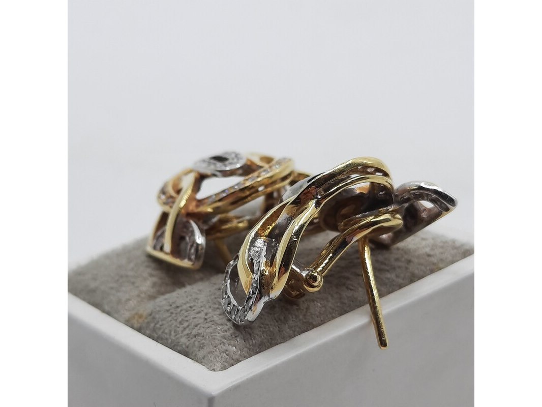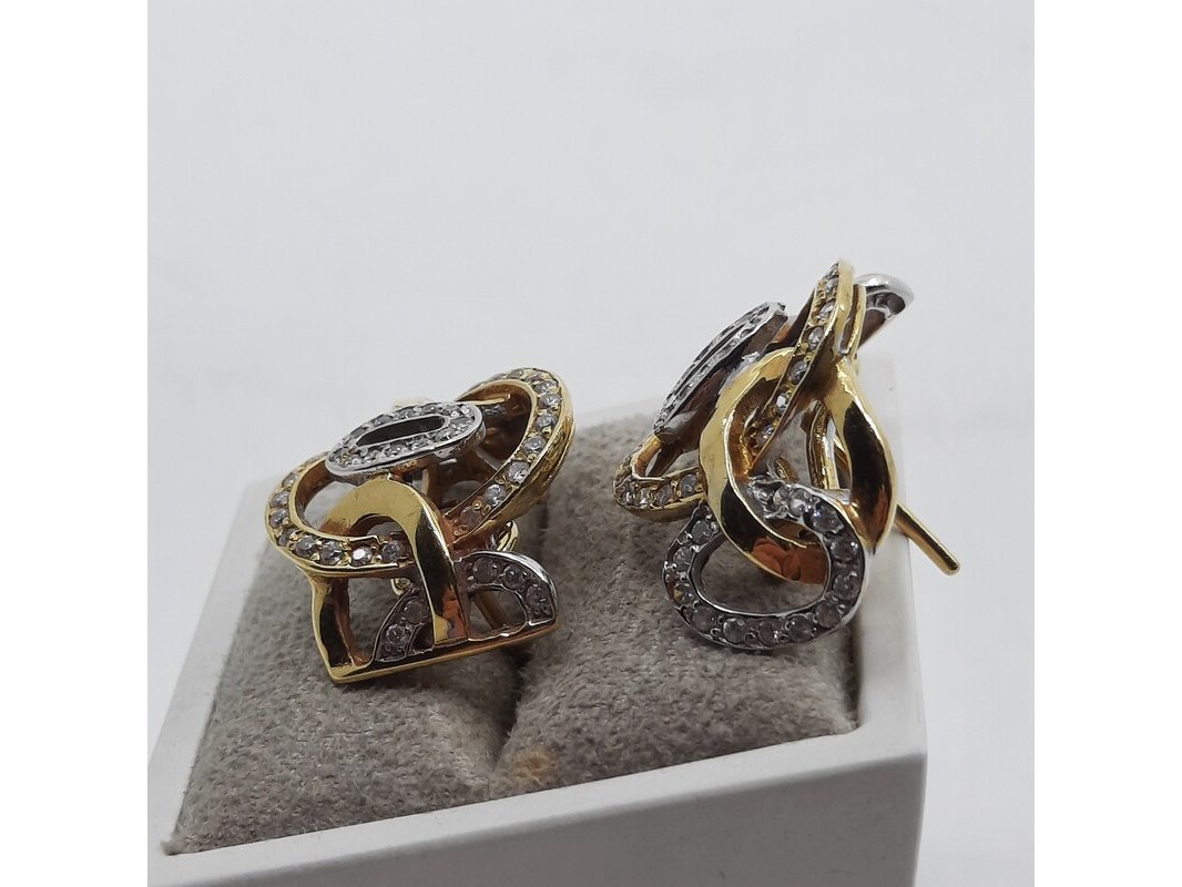 Product: Paar oorhanger, 18 karaats Conditie: gebruikt Specificaties: Een paar 18 karaats wit en geelgouden oorclips met zirkonia. Gewicht samen ca. 11,55 gram.