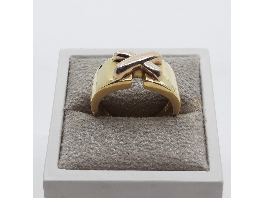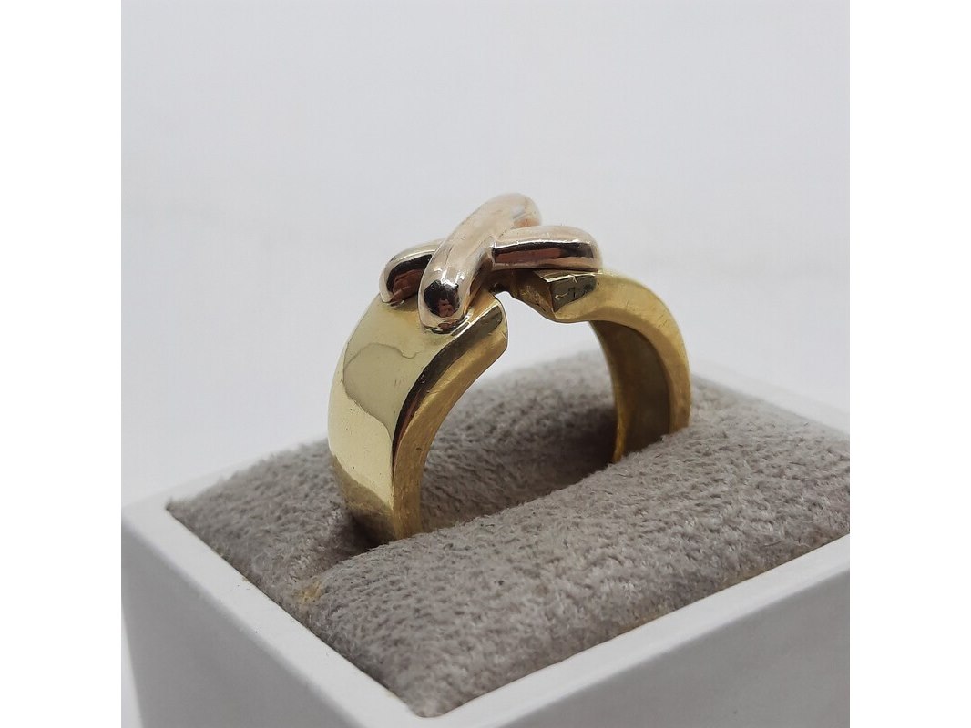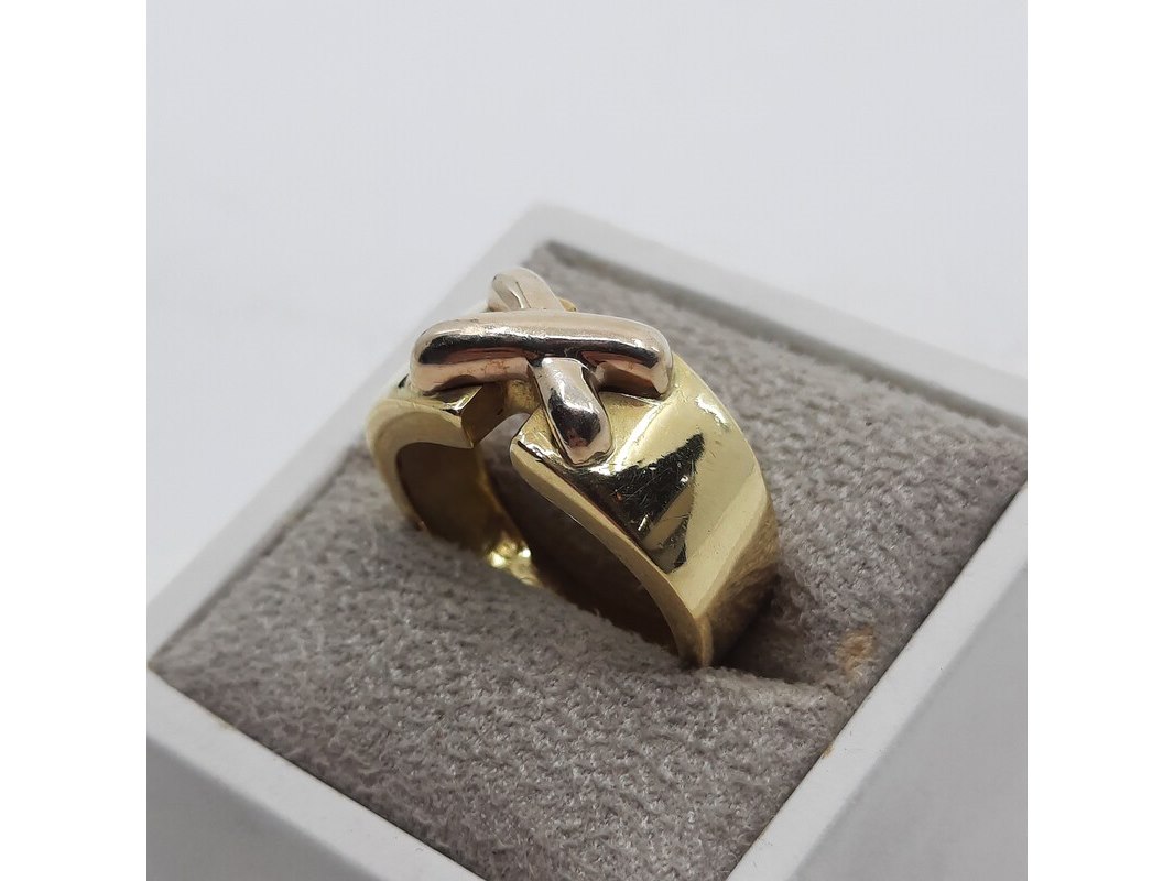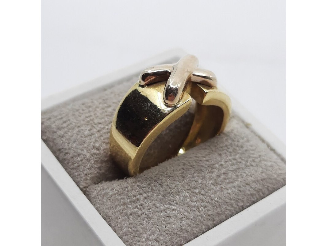 Product: Ring, 18 karaats Afmeting: Ringmaat ca. 17 (55) Conditie: gebruikt Specificaties: Een 18 karaats wit en geelgouden ring. Gewicht ca. 6,49 gram.