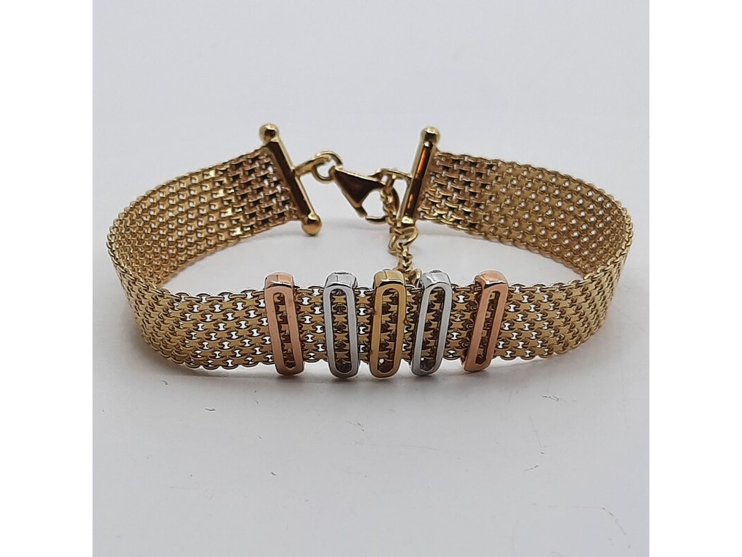 Product: Armband, 18 karaats Afmeting: Lengte ca. 15 cm. Conditie: gebruikt Specificaties: Een 18 karaats wit rood en geelgouden armband met zirkonia. Gewicht ca. 14,22 gram.