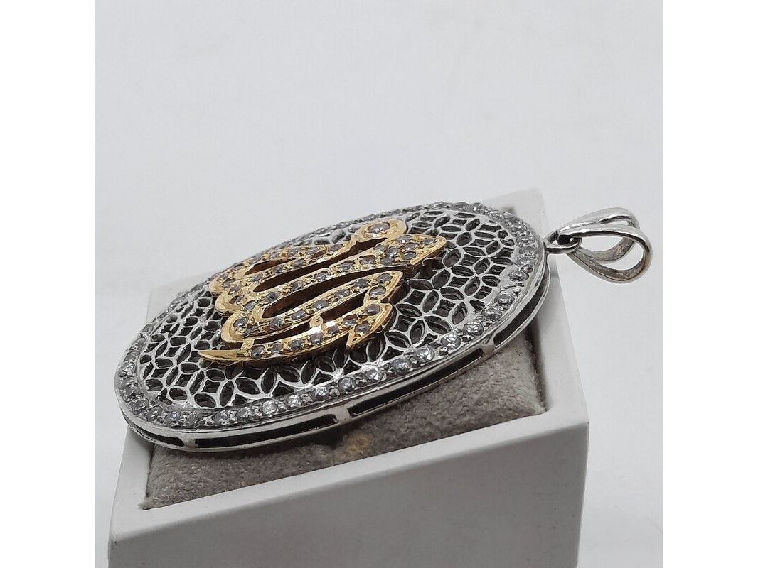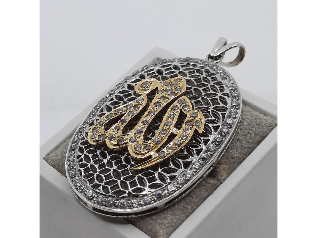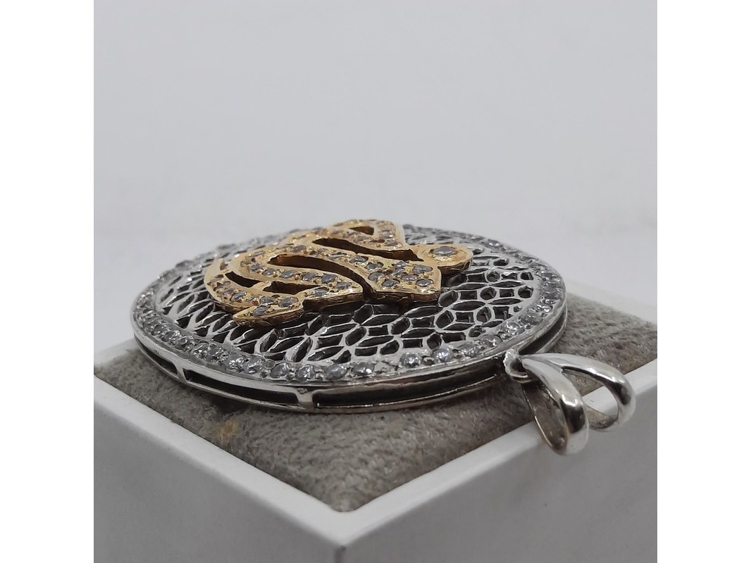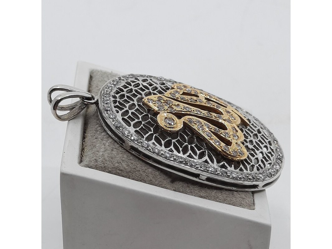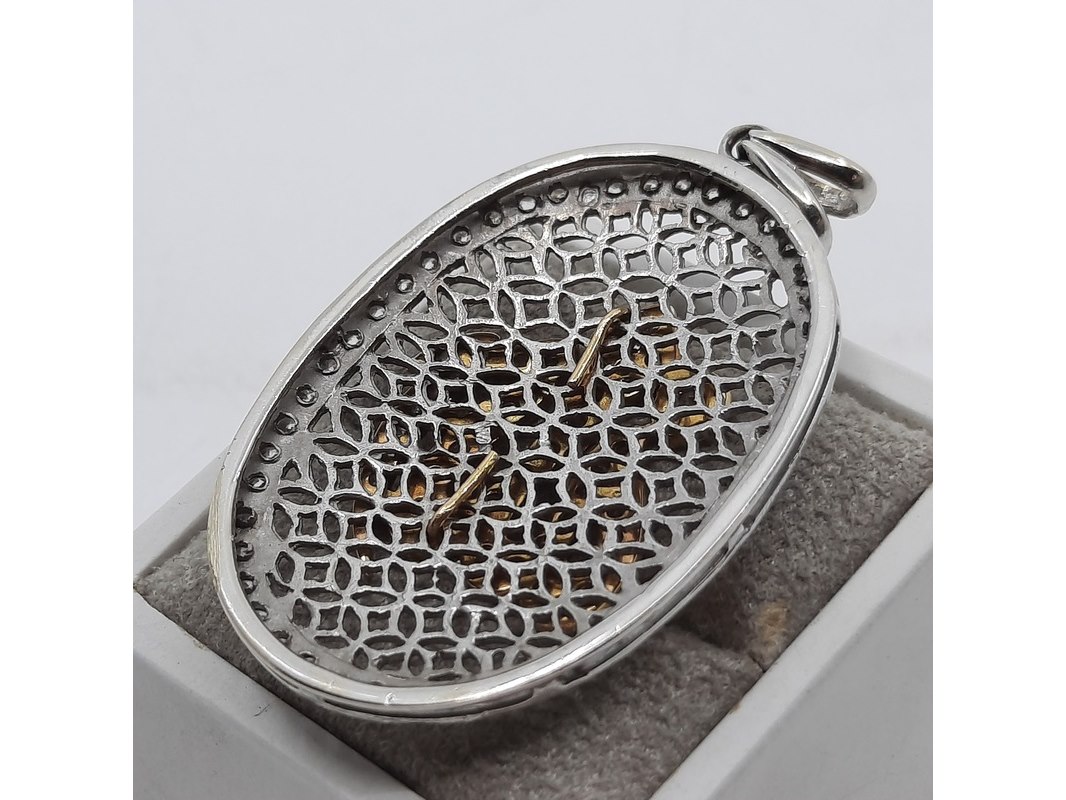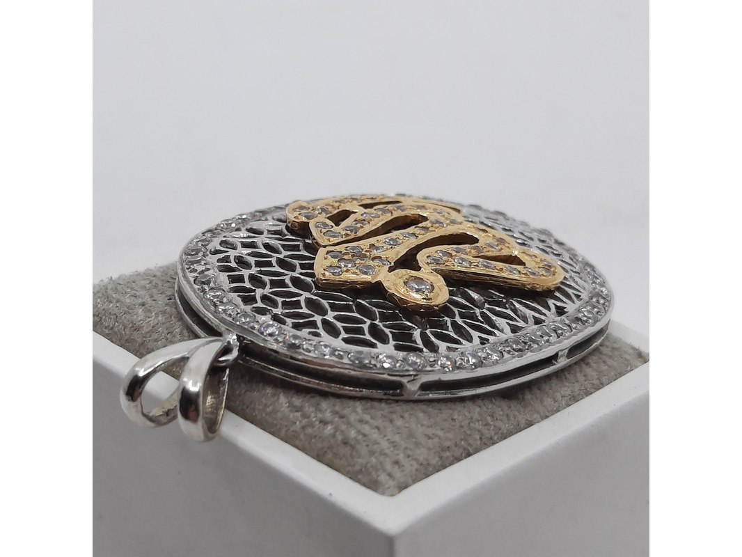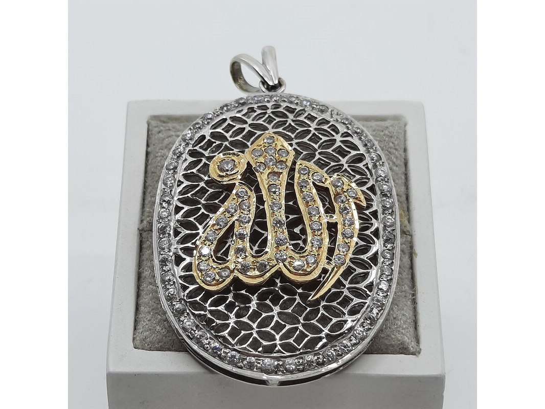 Product: Hanger, 14 karaats Conditie: gebruikt Specificaties: Een 14 karaats wit en geelgouden hanger met zirkonia. Gewicht ca. 12,72 gram.