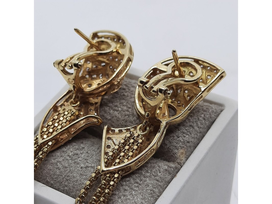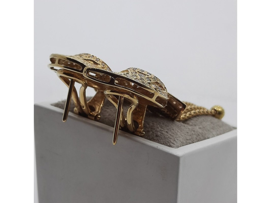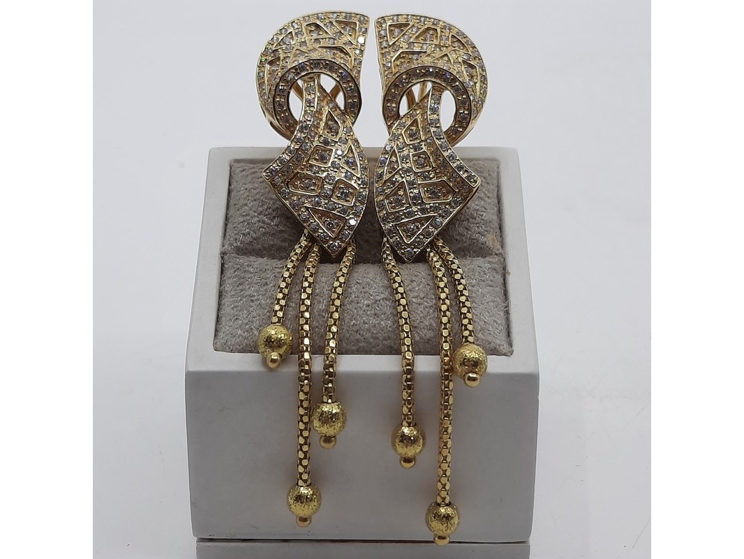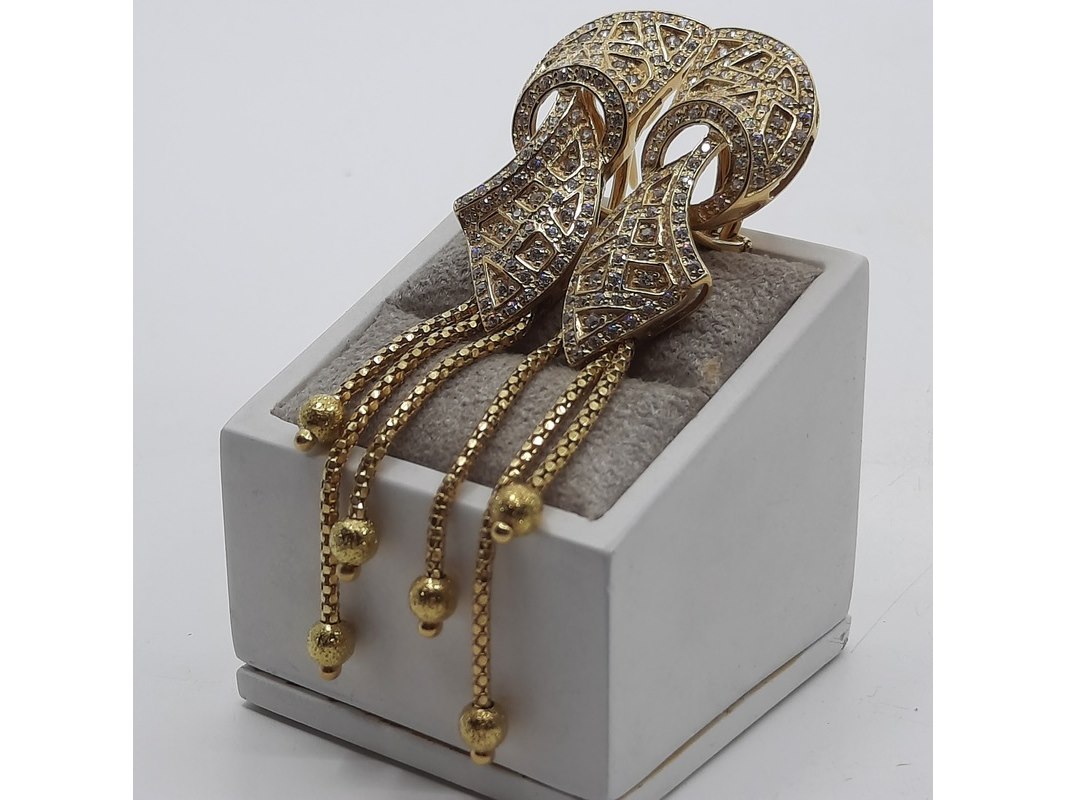 Product: Paar oorclips, 18 karaats Conditie: gebruikt Specificaties: Een paar 18 karaats geelgouden oorclips met zirkonia. Gewicht ca. 15,70 gram.
