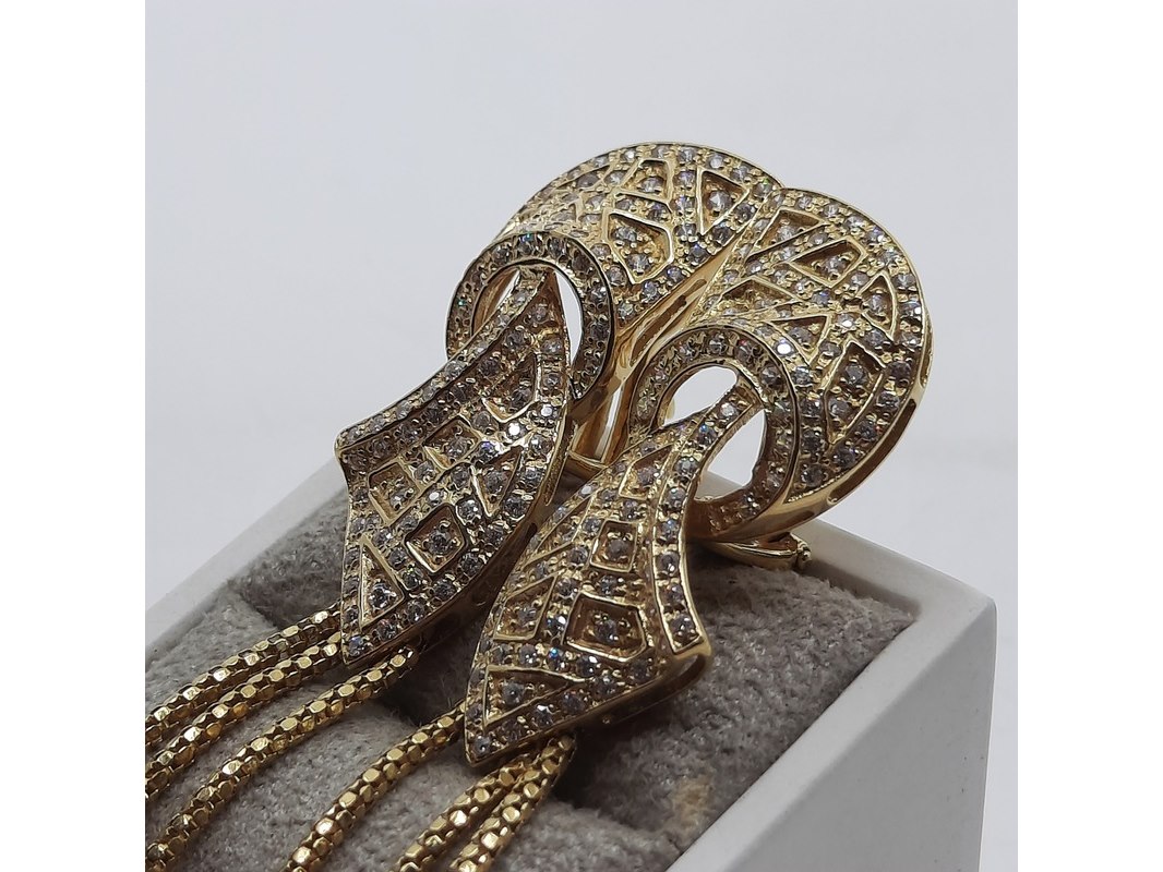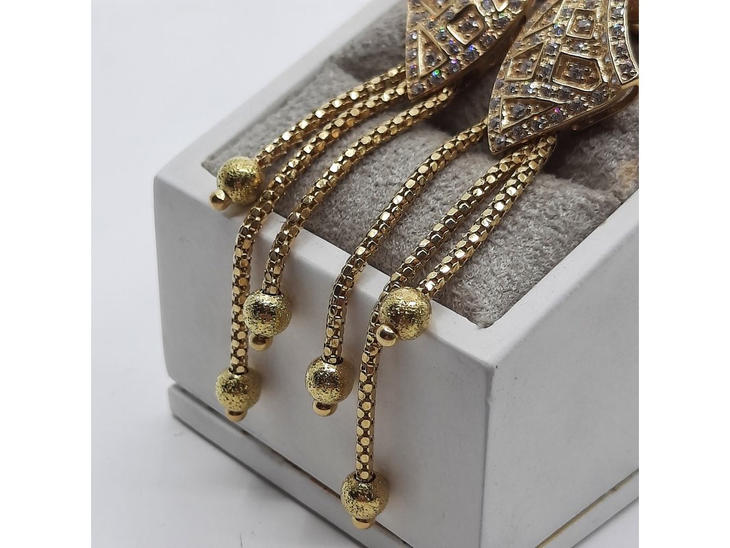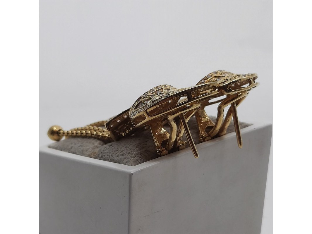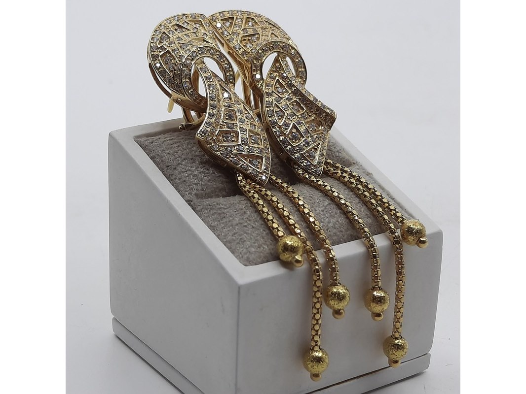 Product: Paar oorclips, 18 karaats Conditie: gebruikt Specificaties: Een paar 18 karaats geelgouden oorclips met zirkonia. Gewicht ca. 15,70 gram.
