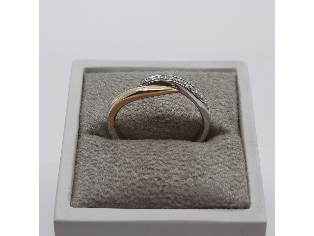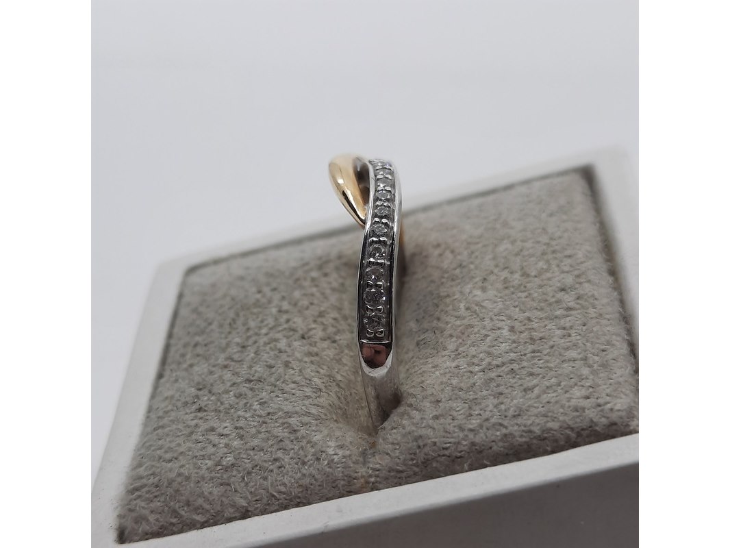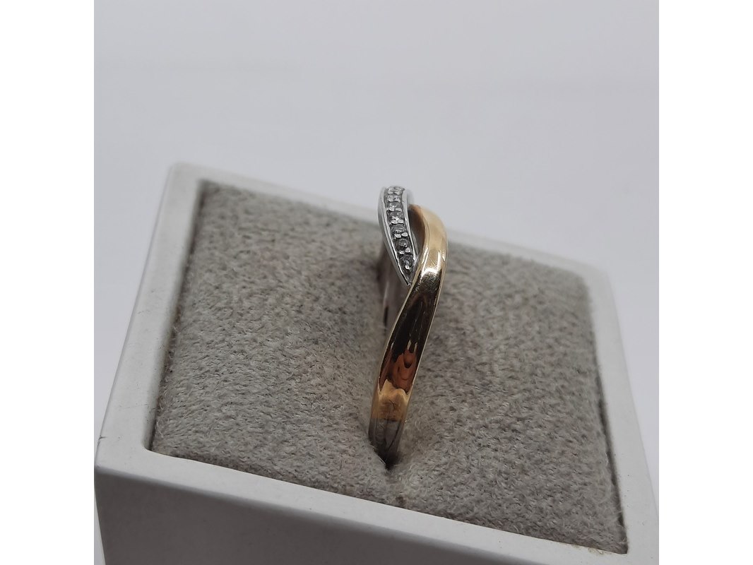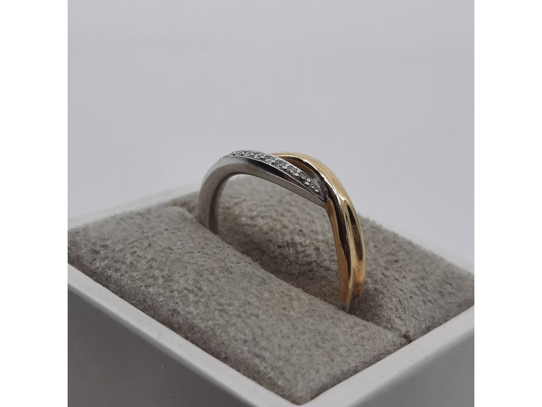 Product: Ring, 14 karaats Afmeting: Ringmaat 17 (56) Specificaties: Een 14 karaats (585/1000) wit- en geelgouden ring met diamant Gewicht ca. 3,1 gram
