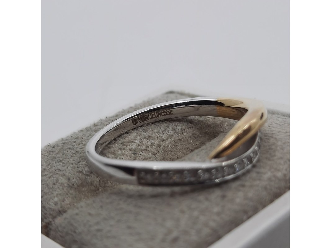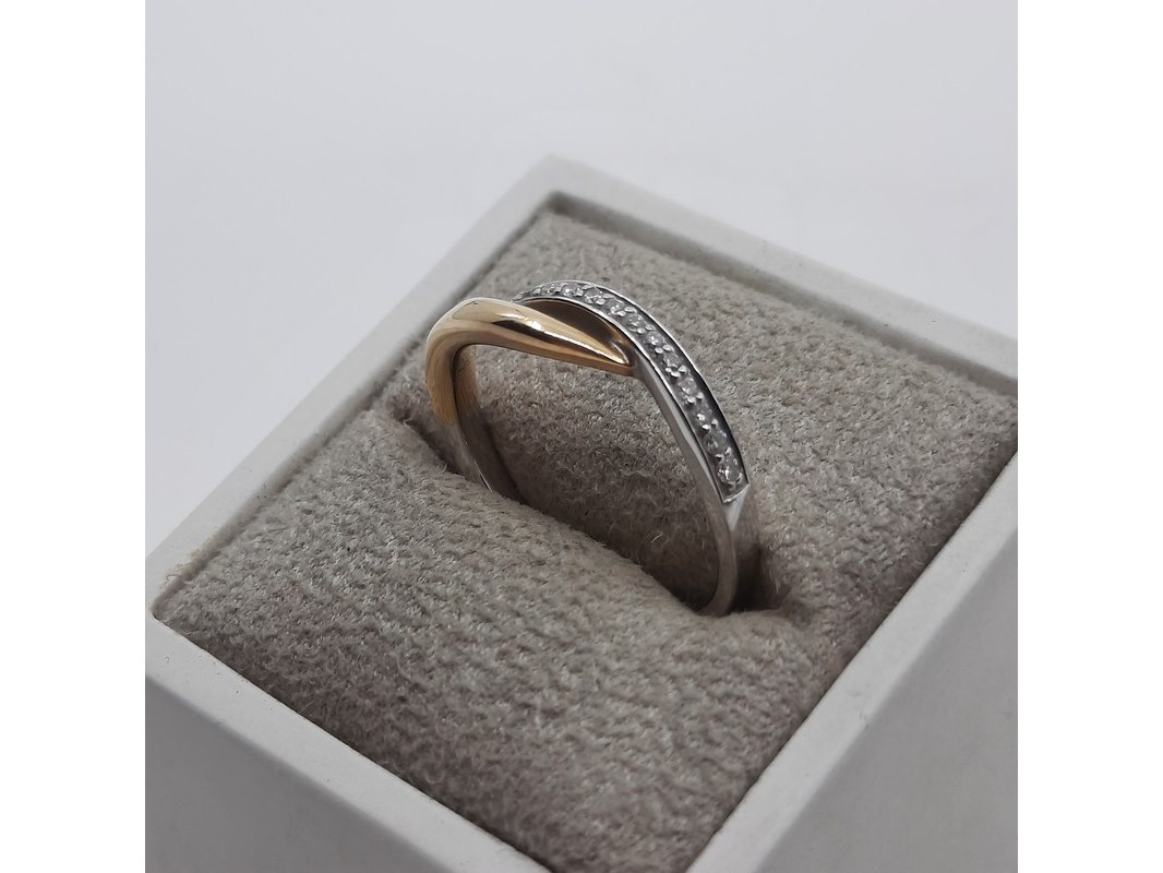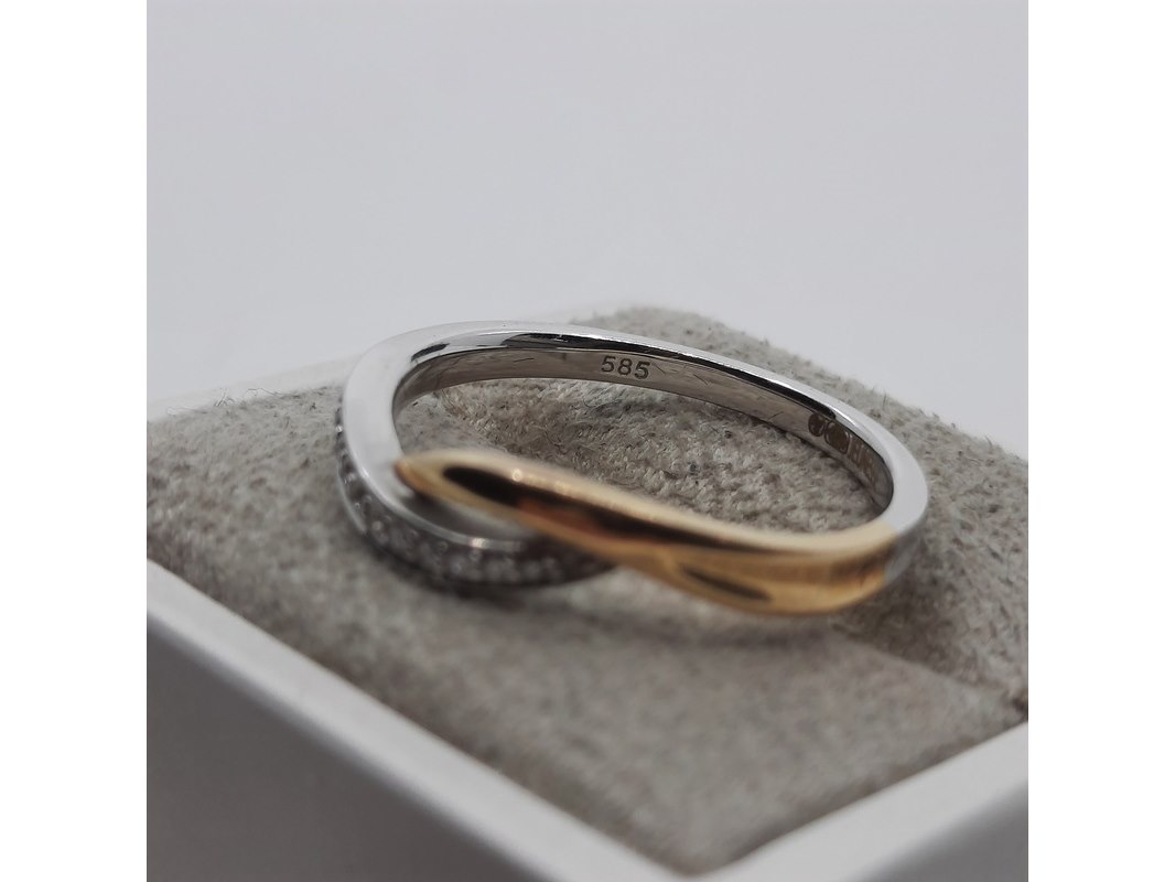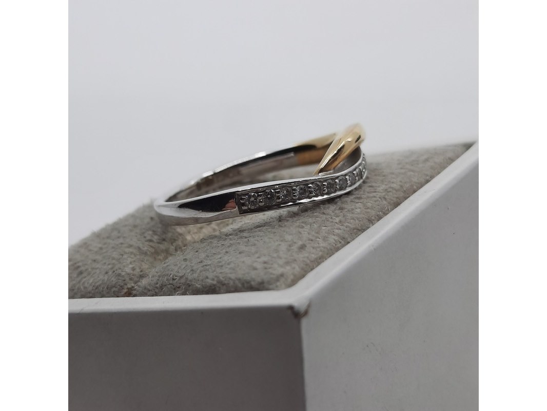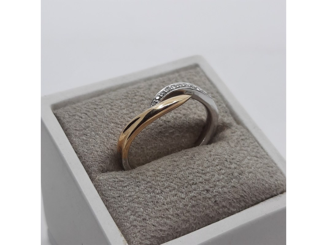 Product: Ring, 14 karaats Afmeting: Ringmaat 17 (56) Specificaties: Een 14 karaats (585/1000) wit- en geelgouden ring met diamant Gewicht ca. 3,1 gram