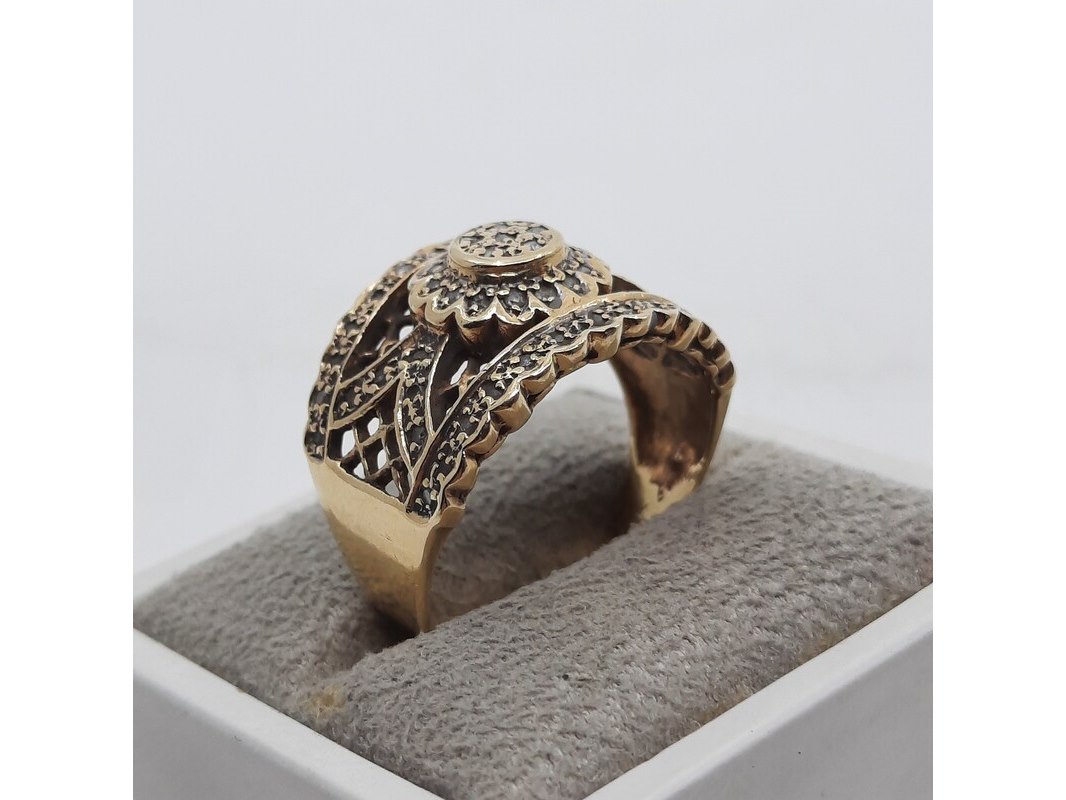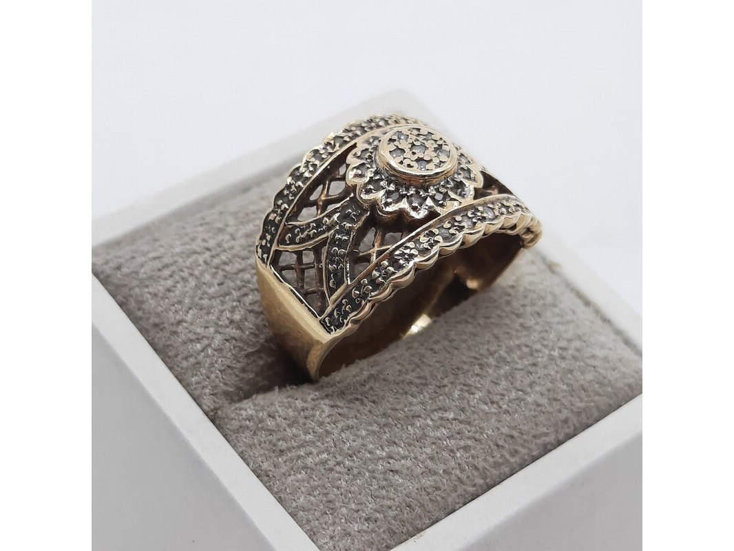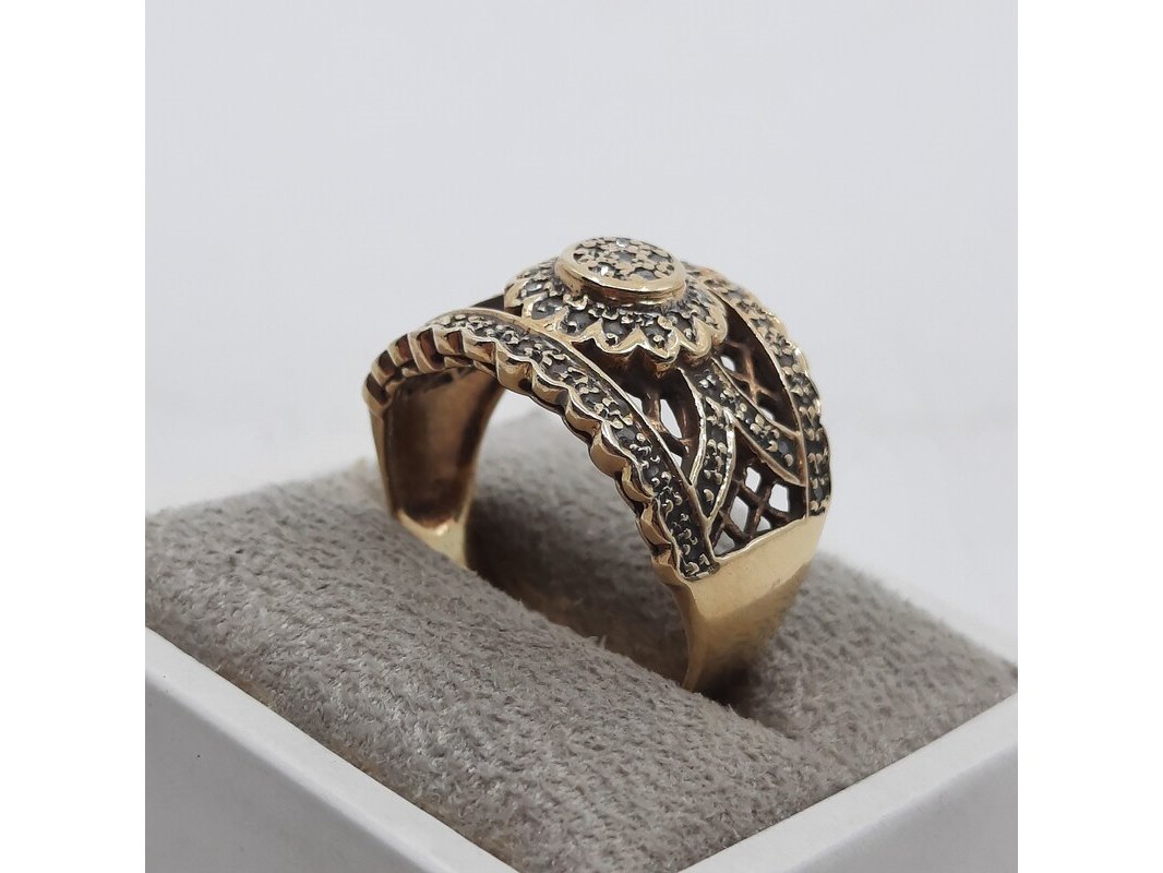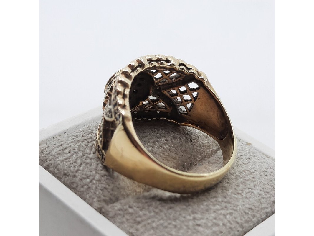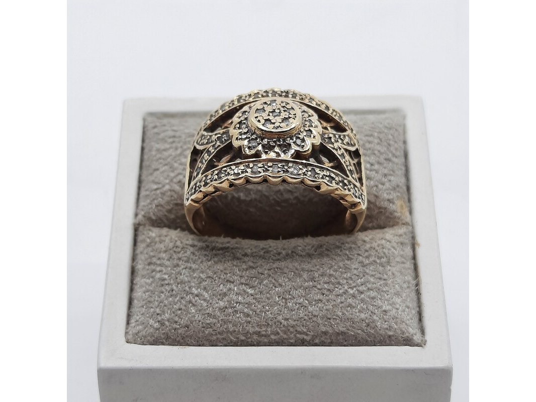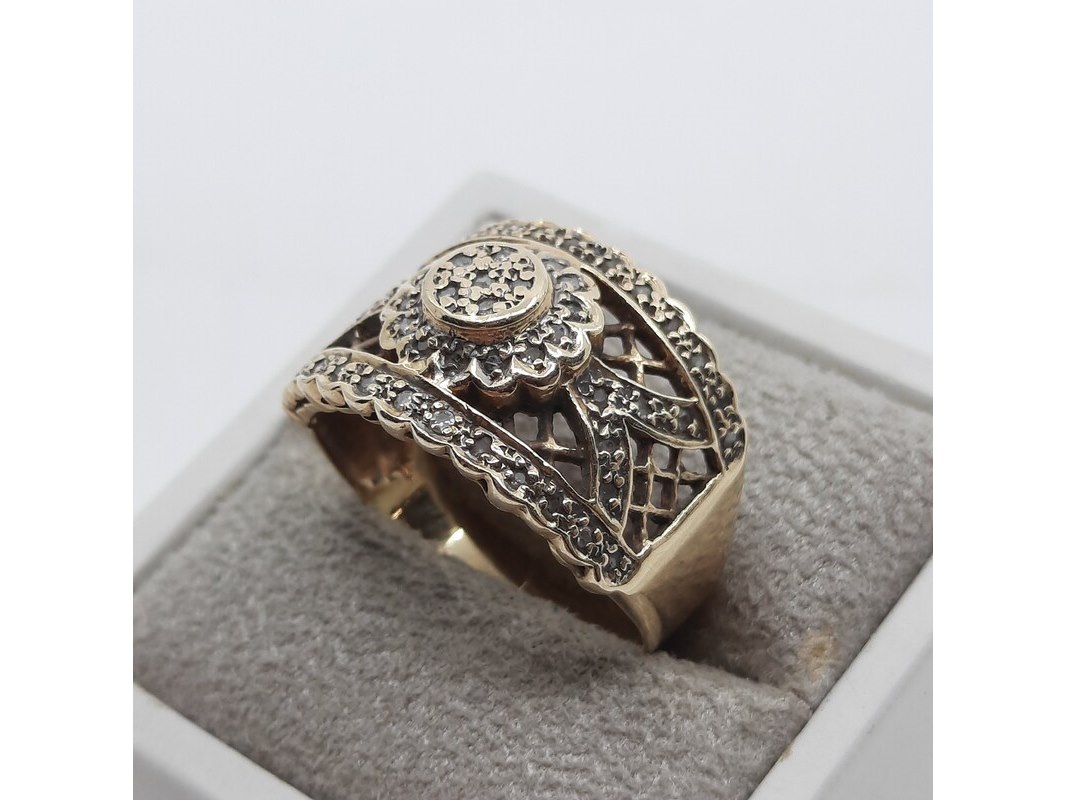 Product: Ring, 14 karaats Afmeting: Ringmaat ca. 18 (58) Conditie: gebruikt Specificaties: Een geelgouden ring, bezet met briljant geslepen diamantjes. Gewicht ca. 6,15 gram.