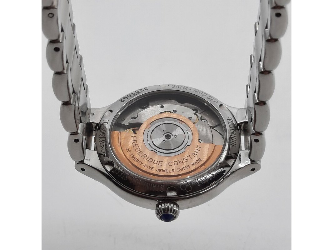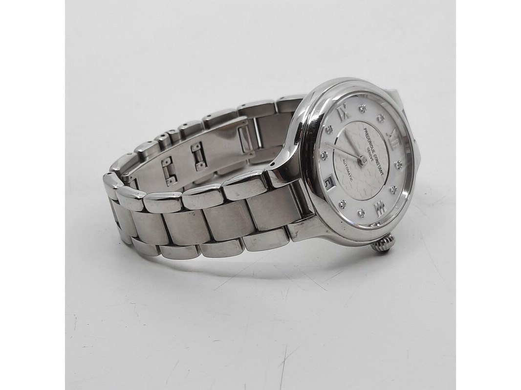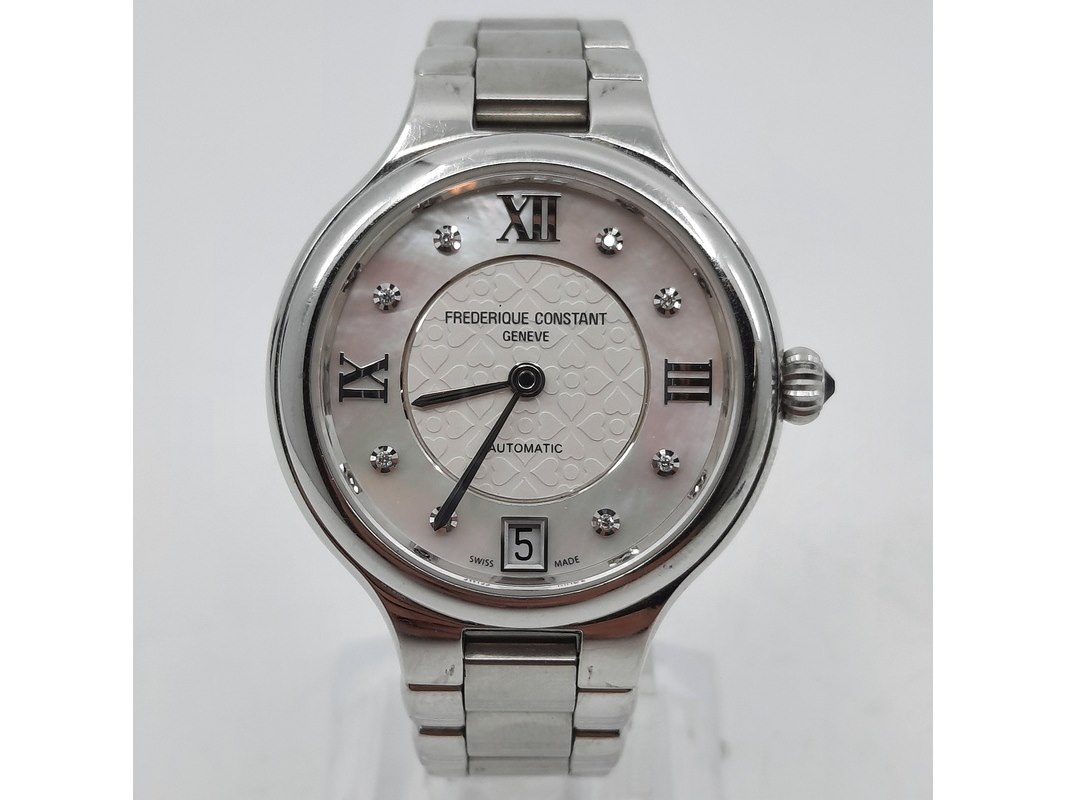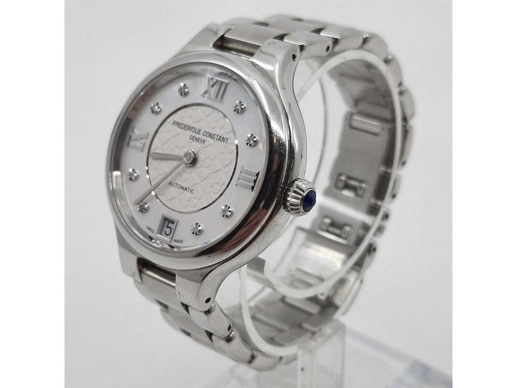 Merk: Frederique Constant Product: Dames polshorloge Conditie: gebruikt Specificaties: Een onedel dames polshorloge, Frederique Constant FC 306X3ER2/6, Met gladde lunet, parelmoer wijzerplaat, diamanten index, automatisch uurwerk met glasbodem en stalen band met vouwsluiting. Geen doos of certificaat.