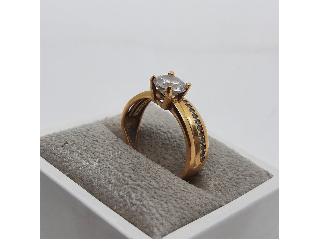 Product: Ring, 20 karaats Afmeting: Ringmaat ca. 16 (51) Conditie: gebruikt Specificaties: Een 20 karaats geelgouden ring met zirkonia. Gewicht ca. 2,91 gram.
