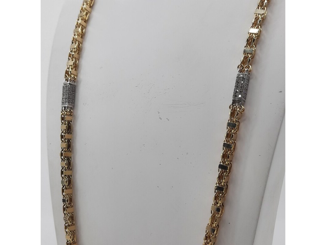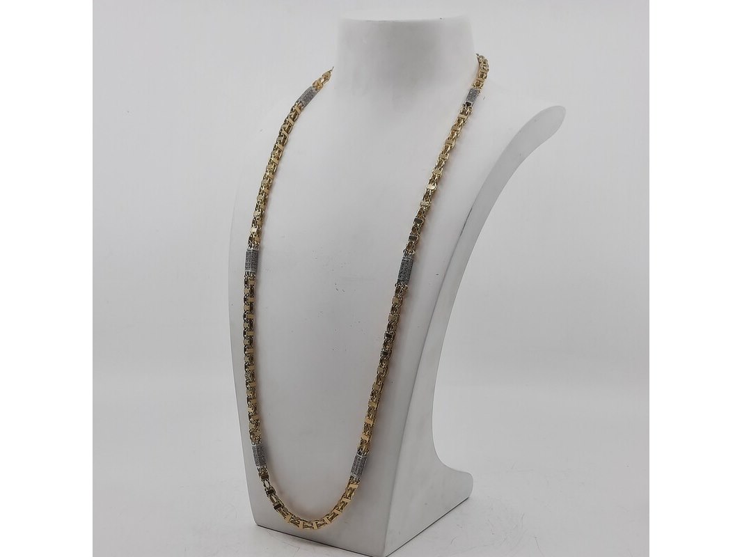 Product: Ketting, 18 karaats Afmeting: Lengte ca. 68 cm. Conditie: gebruikt Specificaties: Een 18 karaats wit en geelgouden collier met zirkonia. Gewicht ca. 49,84 gram.