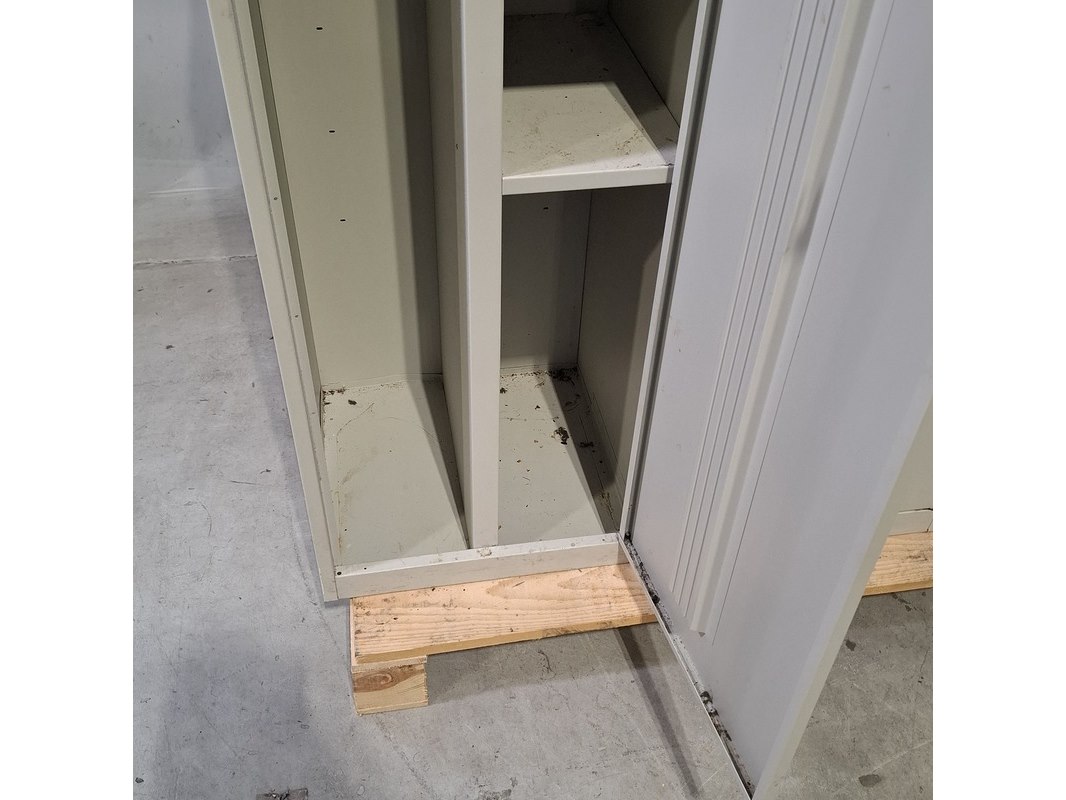 Product: Lockerkast Afmeting: HxBxD ca. 181x46x46 cm Conditie: gebruikt Specificaties: De kasten hebben diverse beschadigingen.