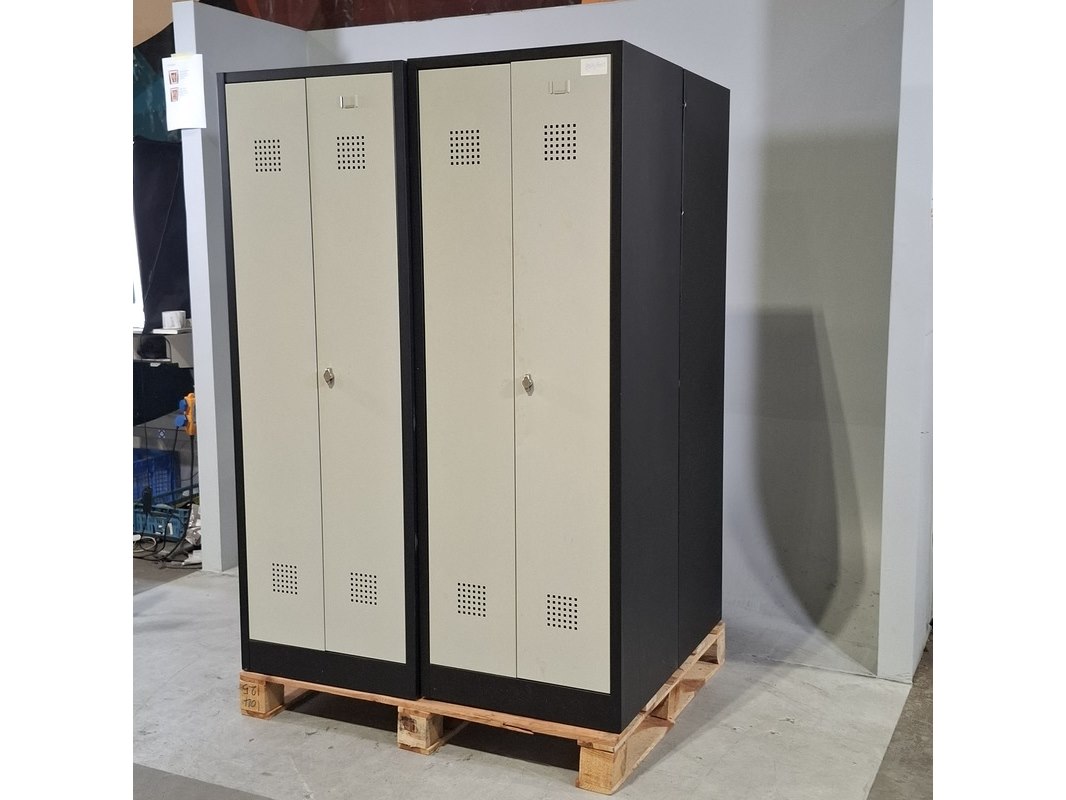 Product: Lockerkast Afmeting: HxBxD ca. 180x62x50 cm Conditie: gebruikt Specificaties: De kasten hebben diverse beschadigingen. Exclusief pallet.