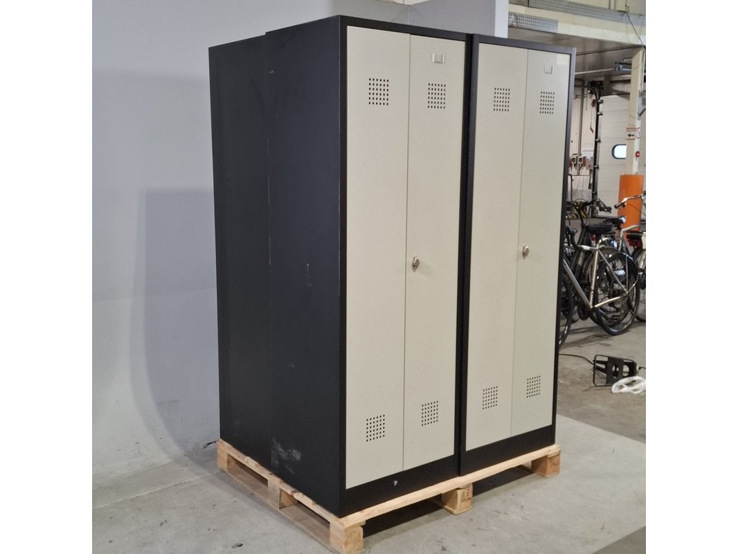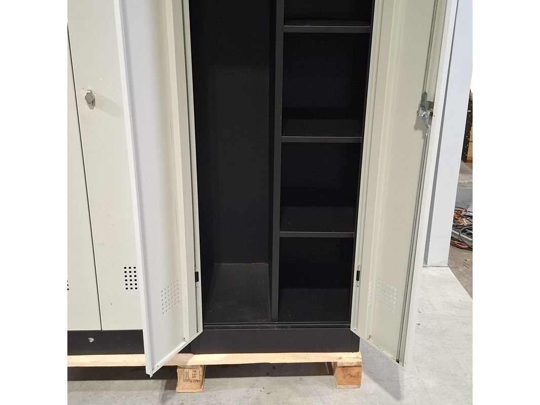Product: Lockerkast Afmeting: HxBxD ca. 180x62x50 cm Conditie: gebruikt Specificaties: De kasten hebben diverse beschadigingen. Exclusief pallet.