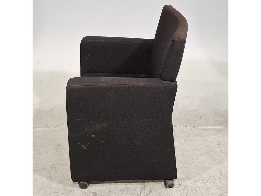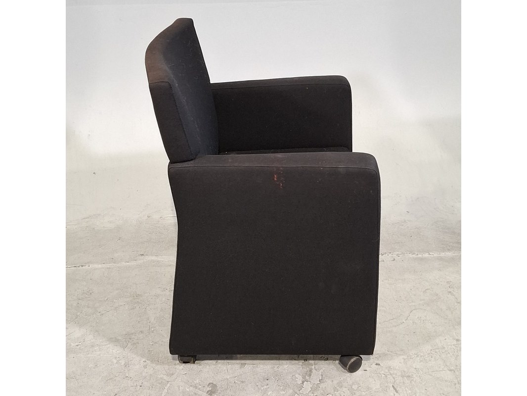 Product: Verrijdbare stoel Afmeting: Zithoogte 44 cm Conditie: gebruikt Specificaties: Diverse vlekken in de bekleding.