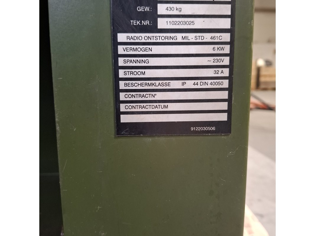 Merk: Kirsch Product: Aggregaat Afmeting: lxbxh ca. 142x67x86 cm BouwJaar: 1993 Specificaties: 230V 50Hz 32A 6 kW Technische staat en compleetheid onbekend. Exclusief pallet