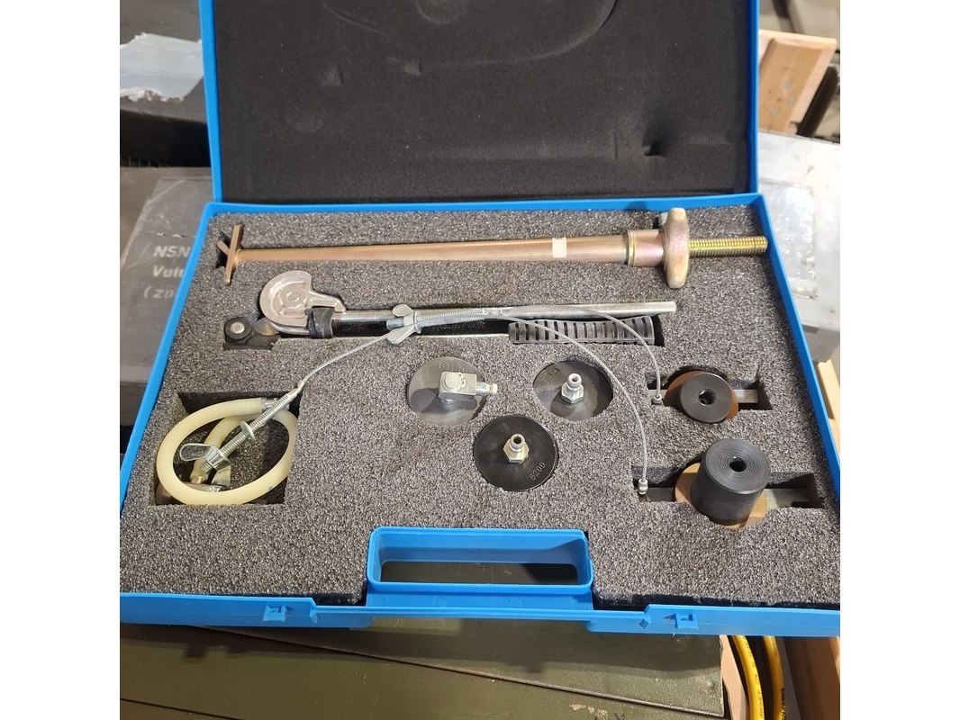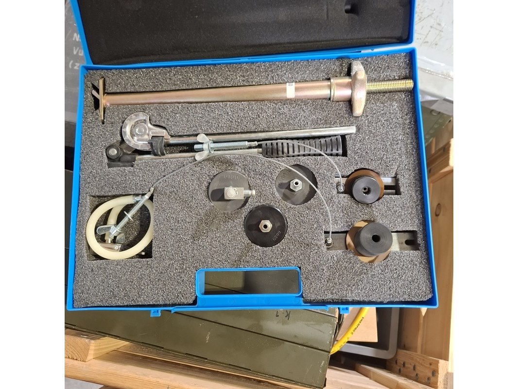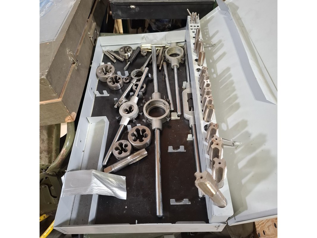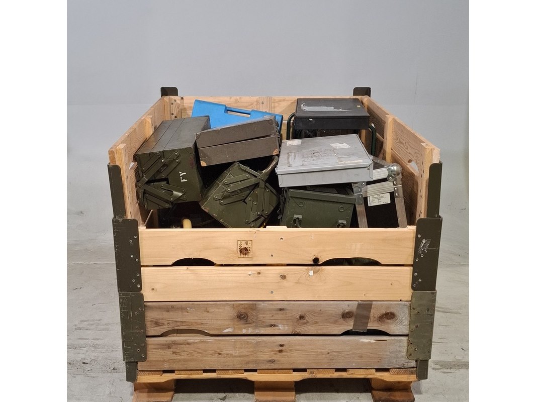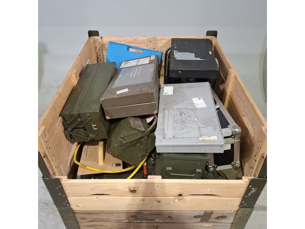 Product: Divers gereedschap Specificaties: Bestaande uit o.a. draadsnij set, aggregaat, gereedschapskoffer met inhoud, betonschaars, slijpmachine, etc Technische staat en compleetheid onbekend. Exclusief palletkist.