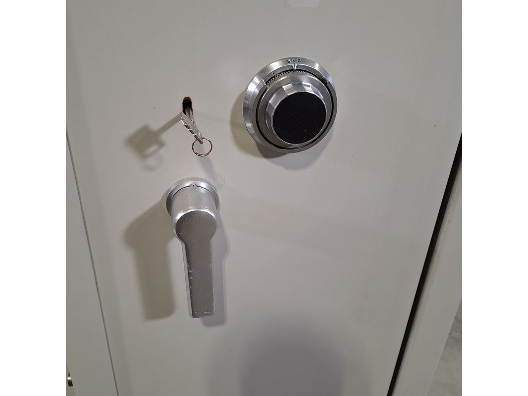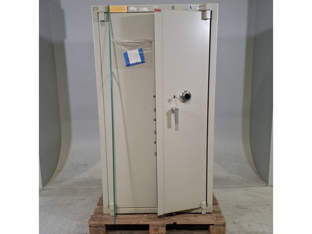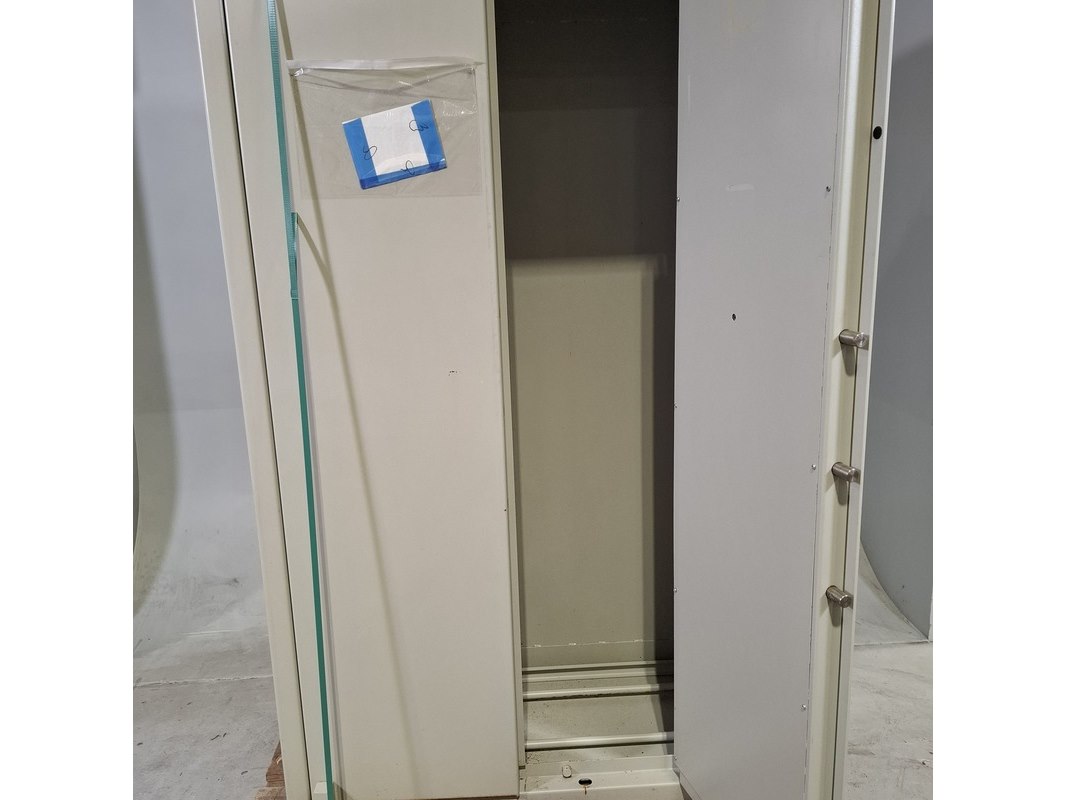 Merk: Holland Safety Product: Brandkast Afmeting: HxBxD ca. 180x100x55 cm. Conditie: gebruikt Specificaties: Inclusief 1x sleutel Verdere technische staat en compleetheid onbekend Exclusief pallet.