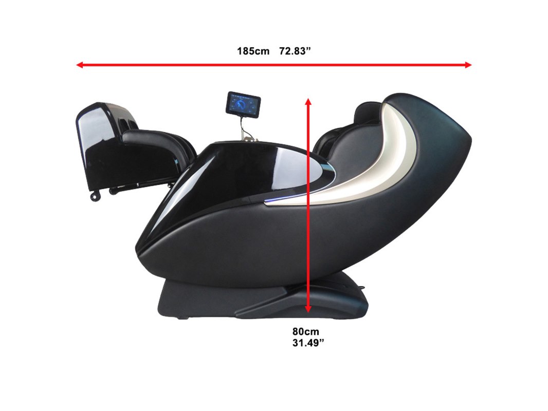 Merk: Vonato Product: Massagestoel Kleur: donkerblauw/zwart/gouden details Materiaal: Hoge kwaliteit leer Conditie: nieuw Specificaties: Type: 898-C65. Bekleding: Hoge kwaliteit leder. Voorzien van: Dual manipulators - Bodyscan - 3D track massage - Bluetooth muziek - Kuit massage & verwarming - Voetenmassage - Touch screen display - Sfeerverlichting - Verschillende progromma's - Aanpasbaar in snelheid en intensiteit. Garantie: 1 jaar