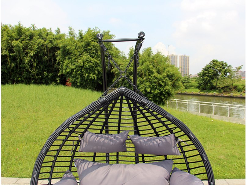 Merk: vonato Product: Hangstoel Kleur: zwart Conditie: nieuw Specificaties: Type: SWING-81-D. Kleur: Zwart frame / grijze kussens. Afmetingen: basket: W135*H125*D78 cm, pole: H197 cm, Base: 105 cm